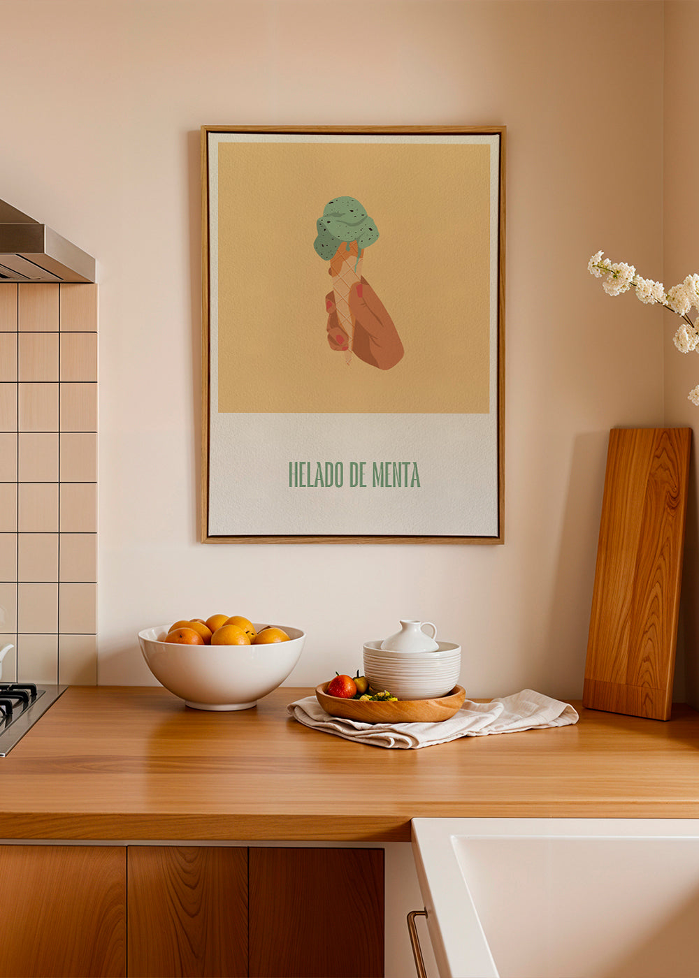 Ein Kunstwerk inspiriert durch die Kollektion von essen- und trinken-poster, geschaffen von Nerea Ramírez, mit Nuancen Gelb, und im Format Vertikal. Finde die schönsten Küchenbilder und inspirierende +Küchen-Einrichtungs-Ideen+ für deine Wohnung. Verschönere deine Inneneinrichtung mit Kunst.
