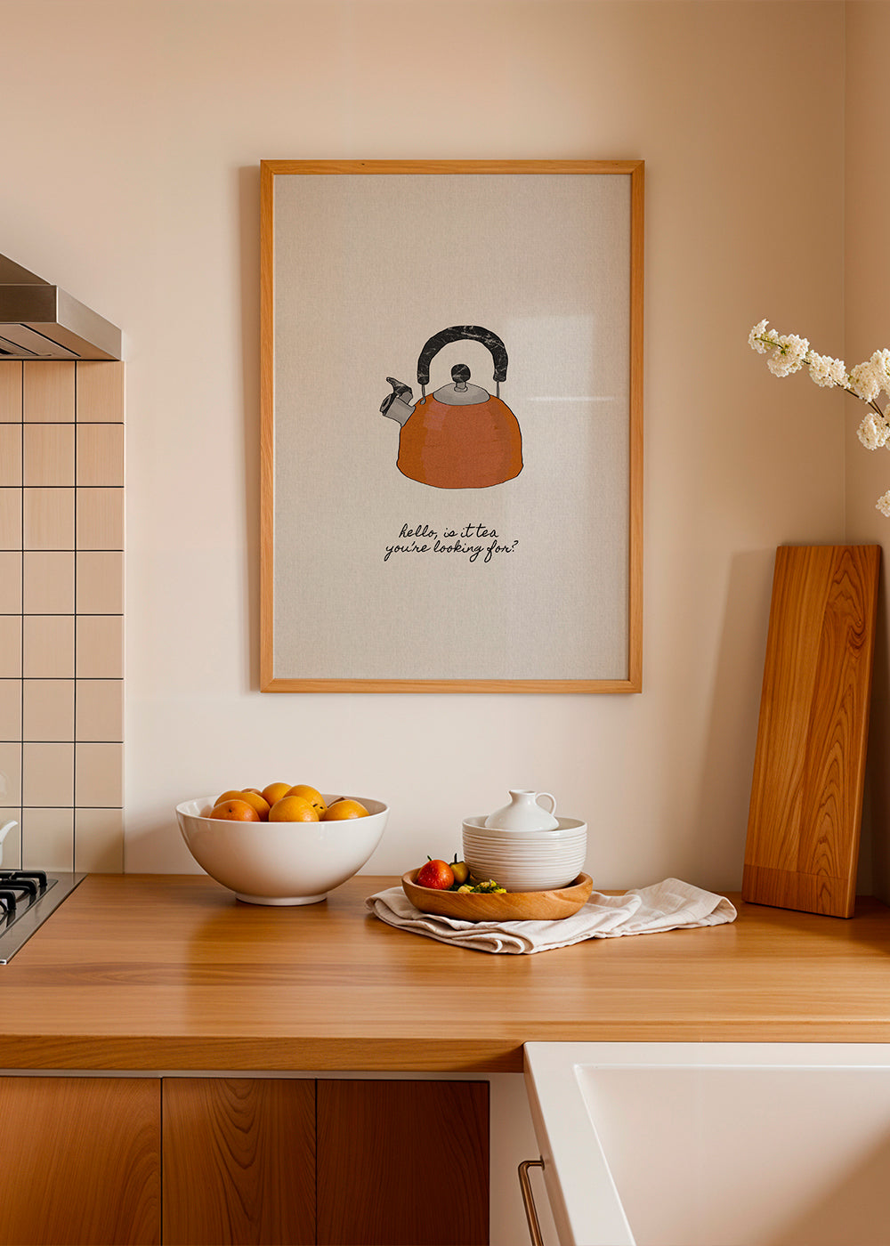 Ein Wandbild aus unserer Kollektion von kaffee-poster und bilder mit kaffee-motiven, des Kreativschöpfers Orara Studio, mit Farben Orange, und Bildorientierung Vertikal. Wandbilder für die Küche sind perfekt, um diesen Wohnbereich gemütlicher zu gestalten. Verschönere deine Inneneinrichtung mit Kunst.