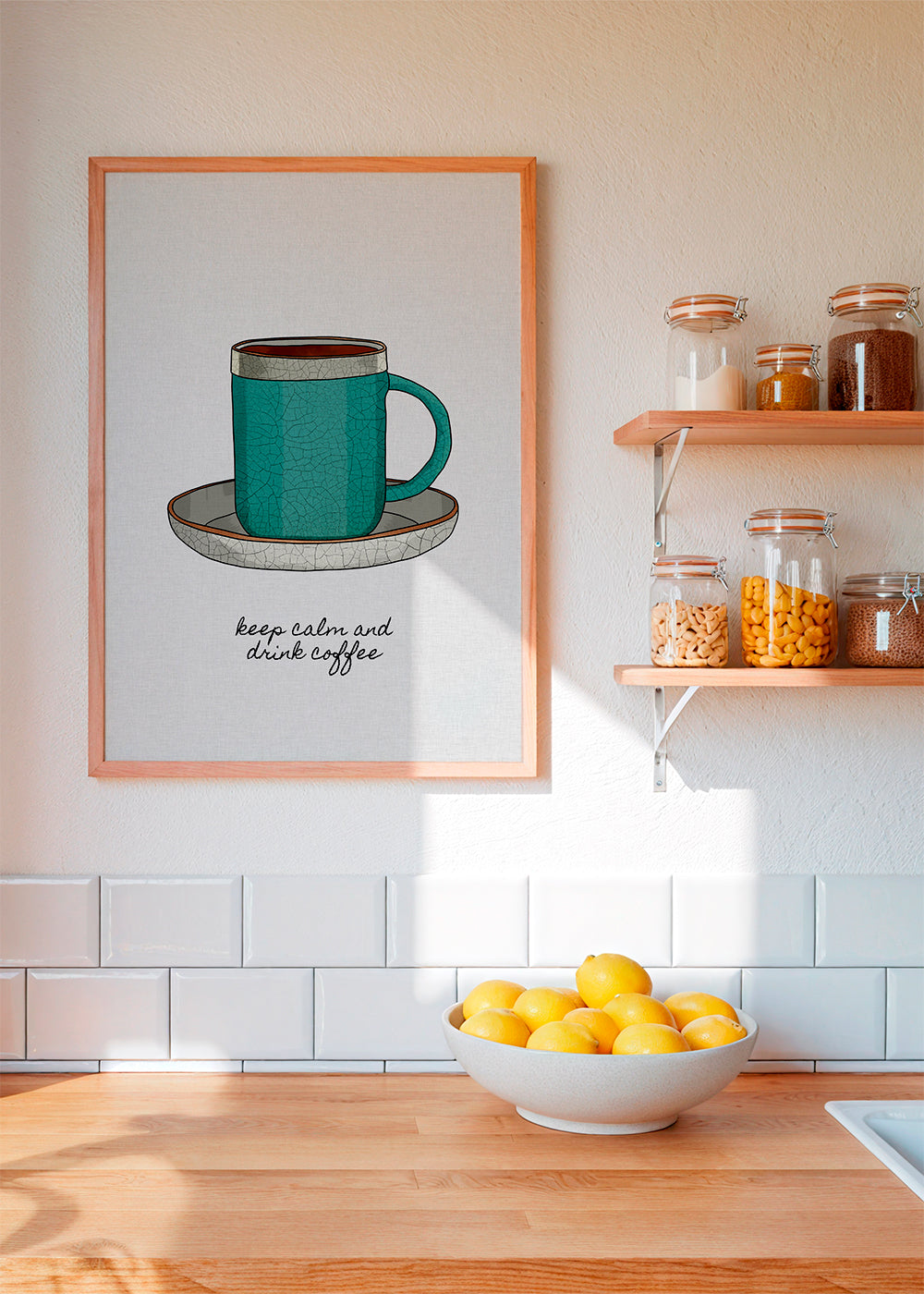 Dieser Kunstdruck aus unserer Bilderauswahl kaffee-poster und bilder mit kaffee-motiven, von Orara Studio, mit Farbverlauf Grün, und geeignet für Bildpositionen Vertikal. Suche schöne Kunstwerke für deine Küche aus und kombiniere sie mit anderer +Küchen-Deko+. Die perfekte Kombination aus Originalität und Design.