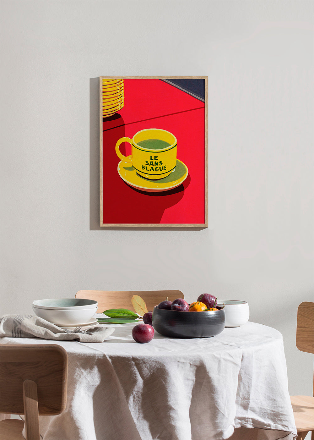 Ein Kunstdruck gehört zum Thema kaffee-poster und bilder mit kaffee-motiven, gehört zur Kollektion 1x, Farbtönen rot, und mit Bildposition vertikal. Auch die Küche kann ein fröhlicher Ort sein – lasse dich von unseren Küchenpostern und +Wandbildern mit Küchenmotiven+ inspirieren. Eine harmonische Wanddeko ist bei jedem Einrichtungsstil wichtig.