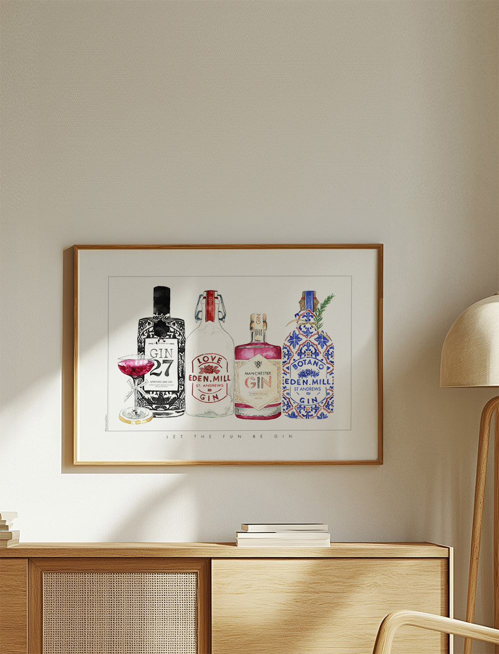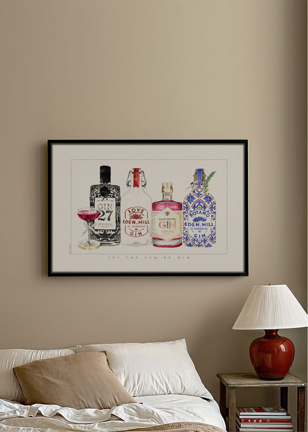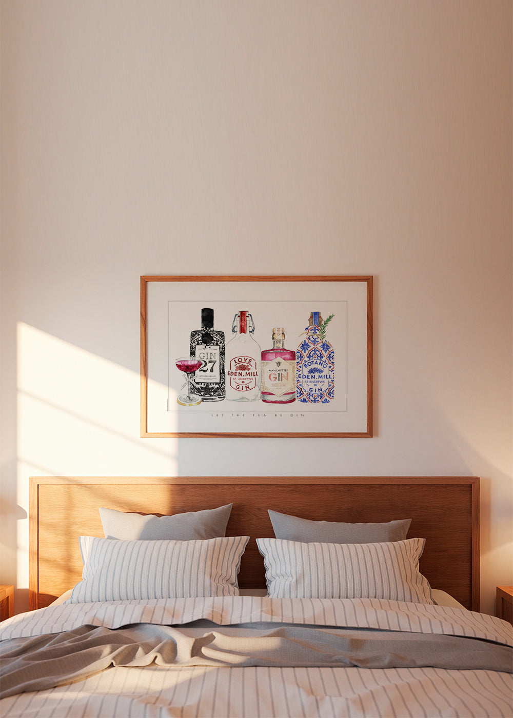 Ein Poster aus unserer Bilderauswahl gin-poster, designed von Mercedes Lopez Charro, Farbtönen Mehrfarbig, und mit Bildposition Horizontal. Die Ruhe und Freiheit die Wandbilder mit Landschaften verströmen ist einzigartig. Der letzte Schliff zur Einrichtung deiner Wohnung.
