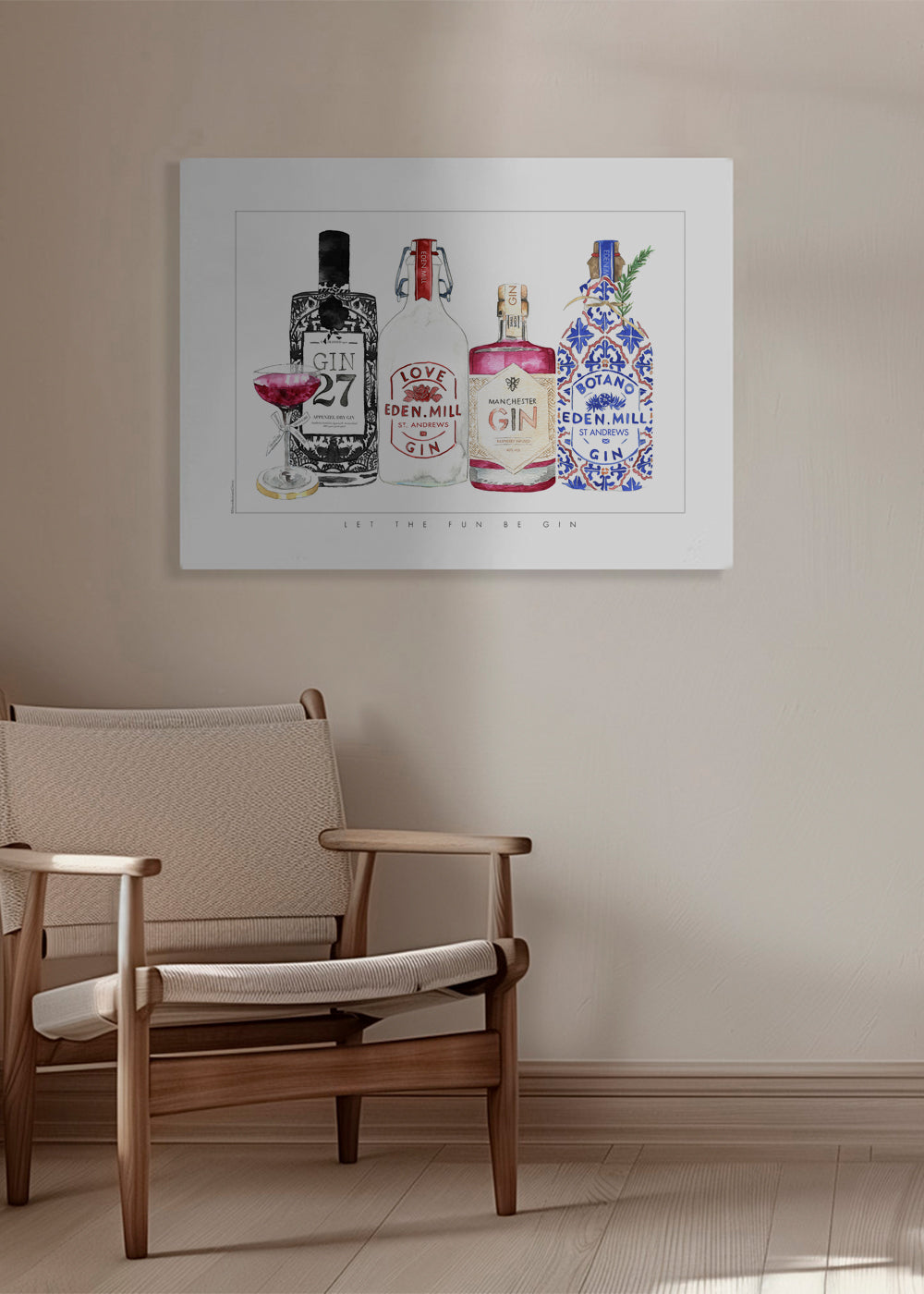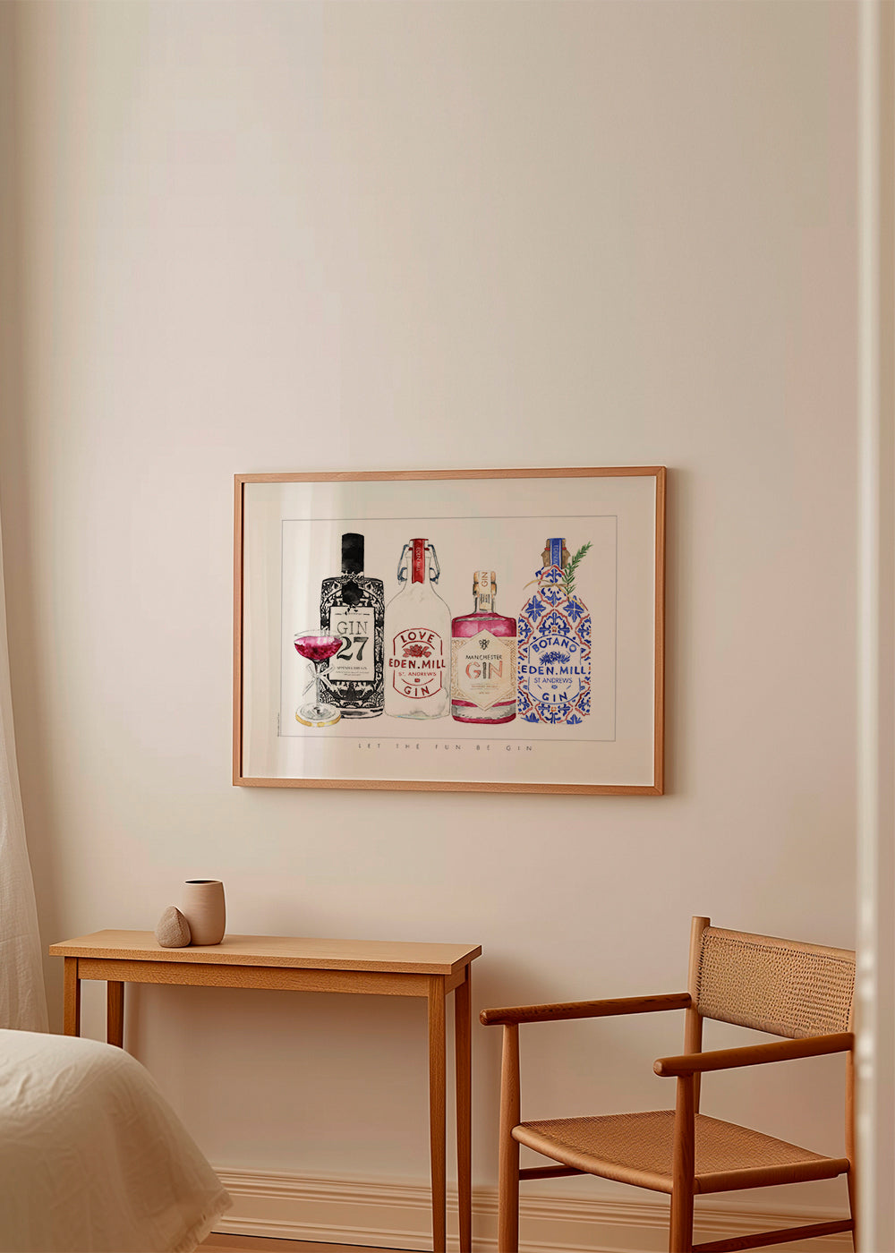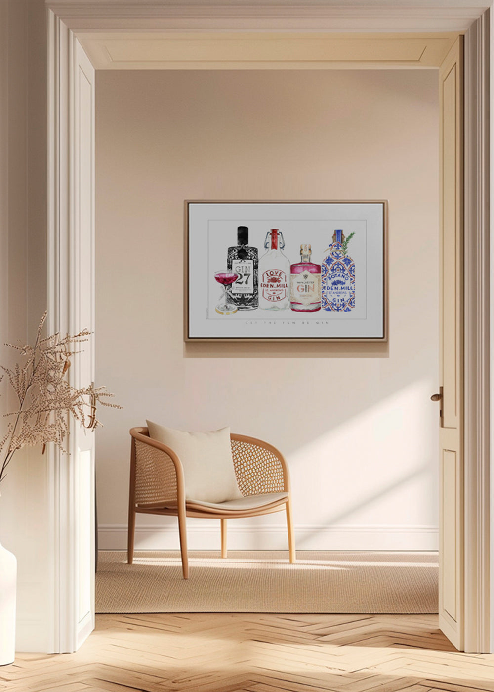 Ein Poster aus unserer Bilderauswahl gin-poster, designed von Mercedes Lopez Charro, Farbtönen Mehrfarbig, und mit Bildposition Horizontal. Die Ruhe und Freiheit die Wandbilder mit Landschaften verströmen ist einzigartig. Der letzte Schliff zur Einrichtung deiner Wohnung.