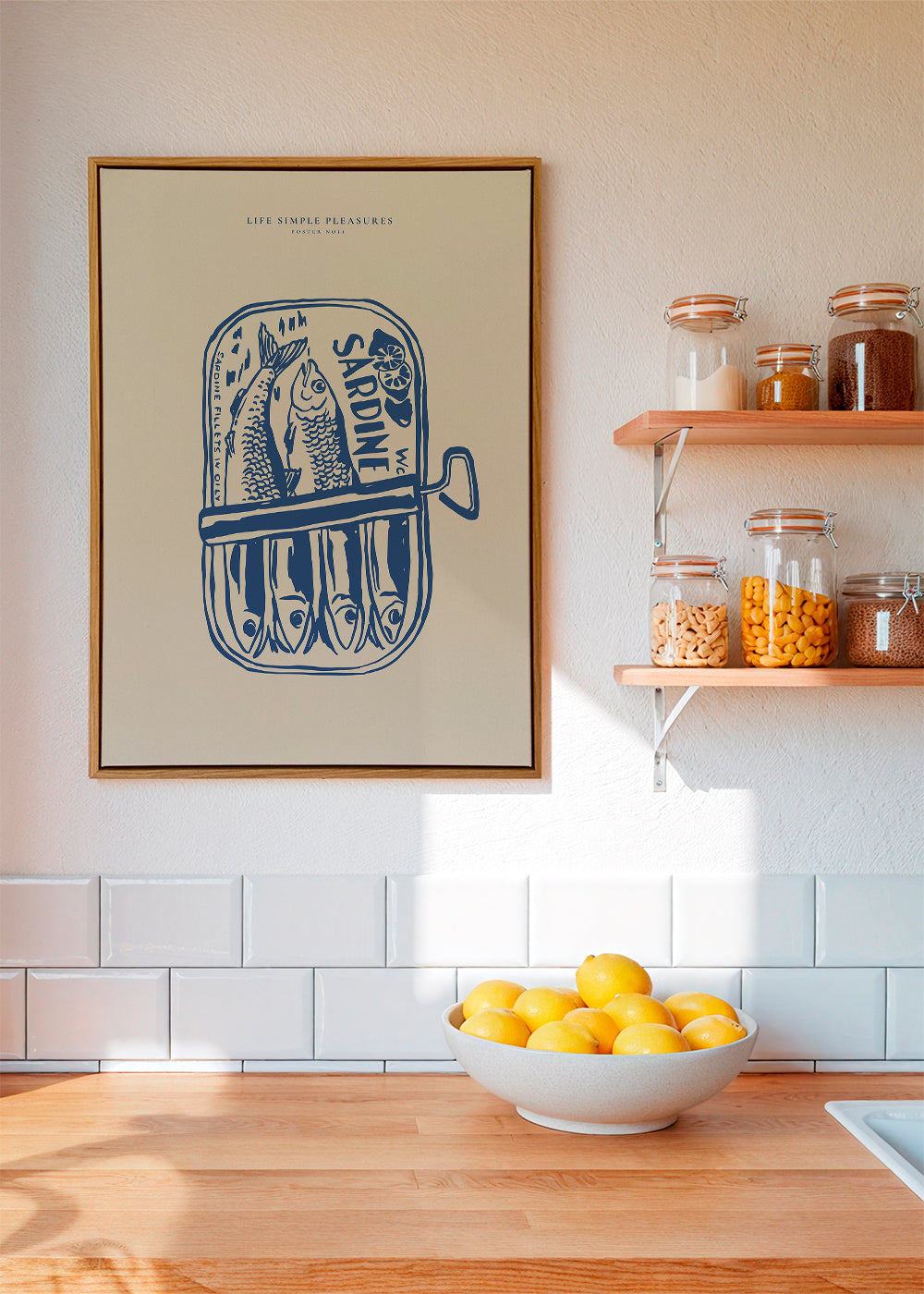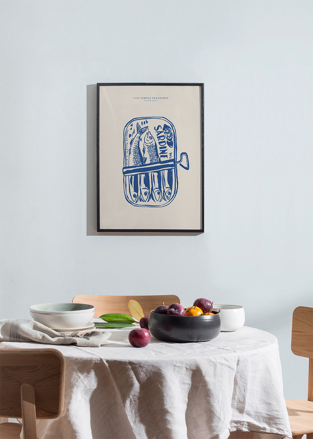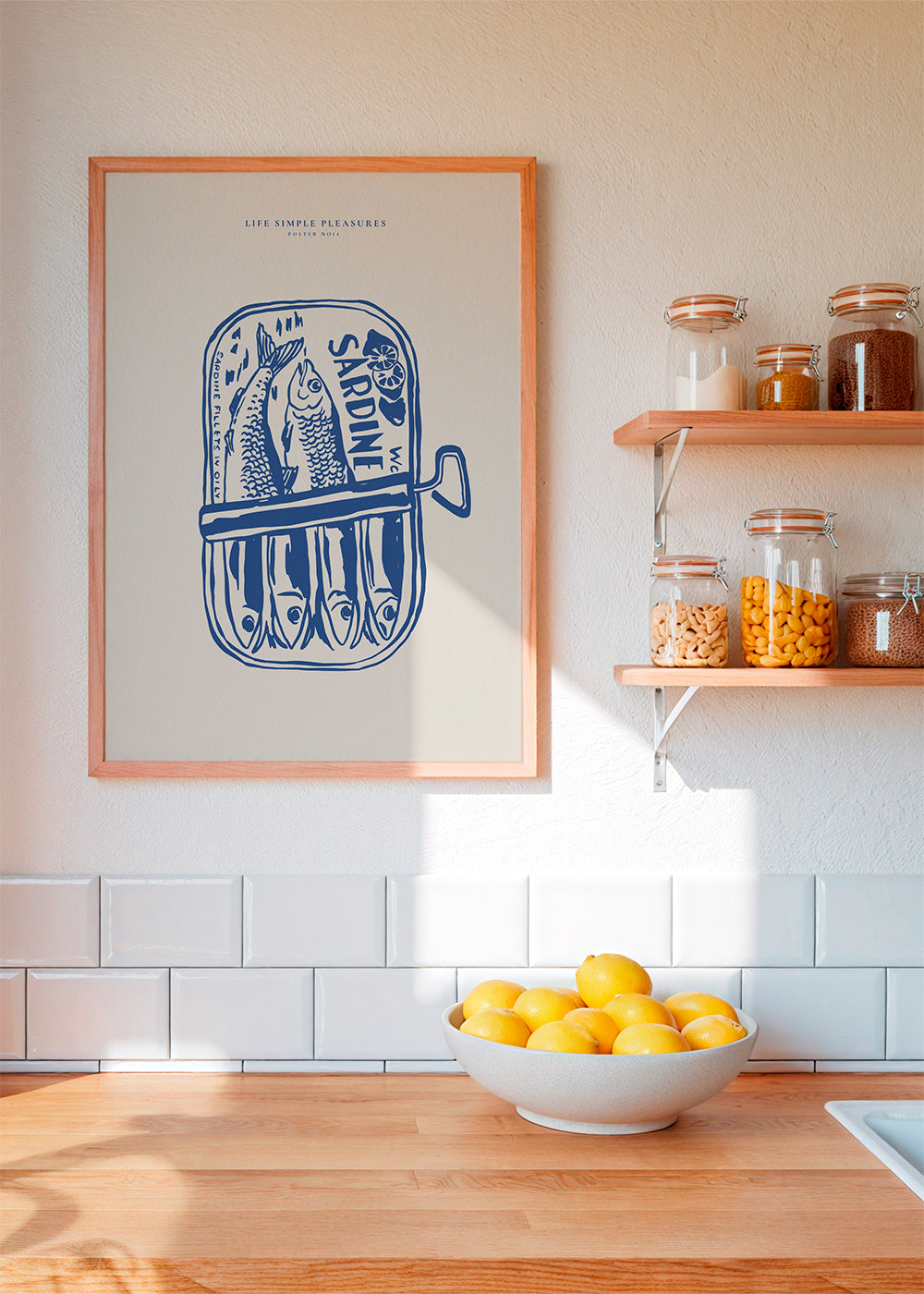 Ein Wandbild aus der Kollektion essen- und trinken-poster, von Seven Wall Art, mit Farbverlauf blau, und mit Ausrichtung vertikal. Suche schöne Kunstwerke für deine Küche aus und kombiniere sie mit anderer +Küchen-Deko+. Unverfälschte Kunst und authentisches Design.
