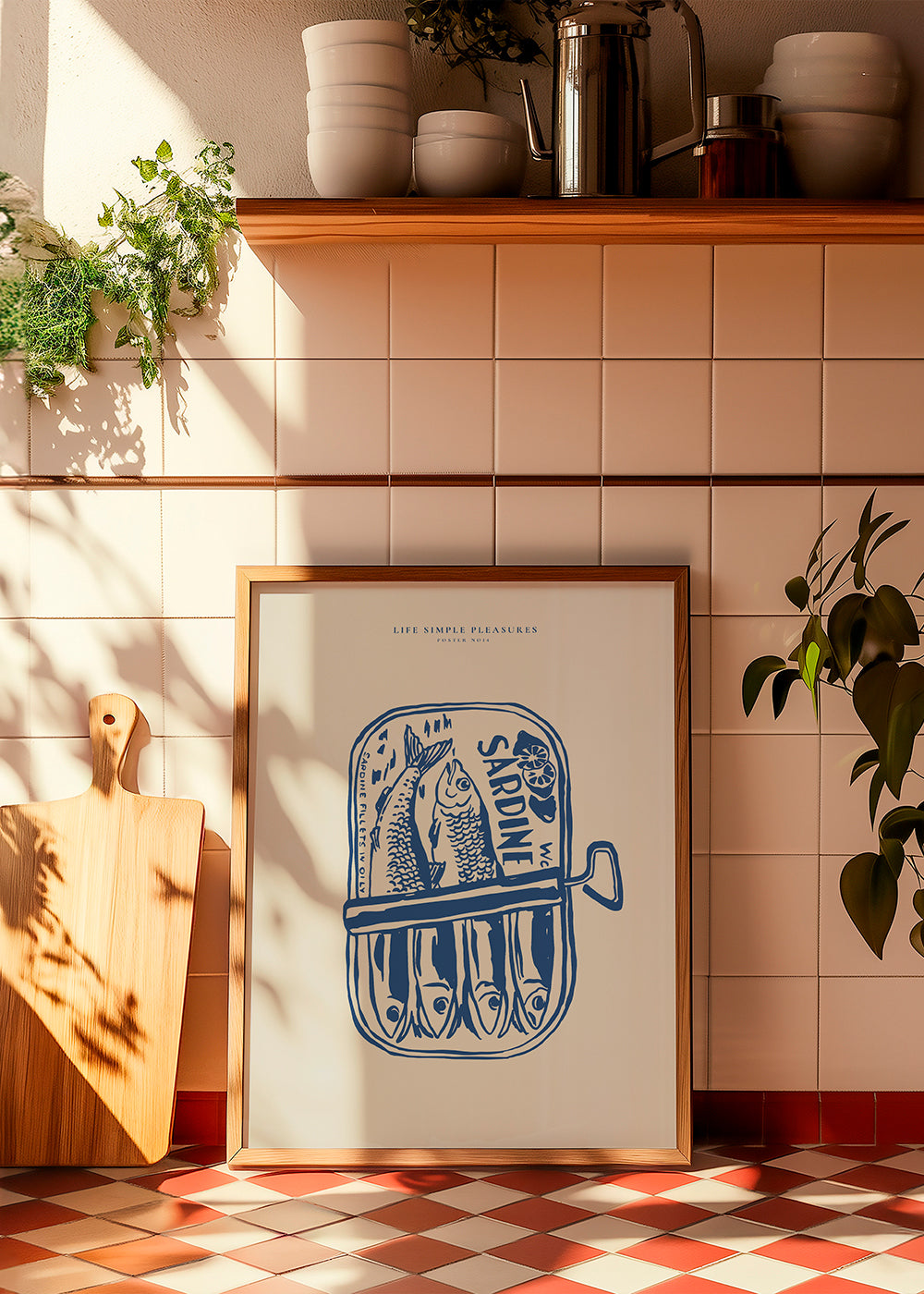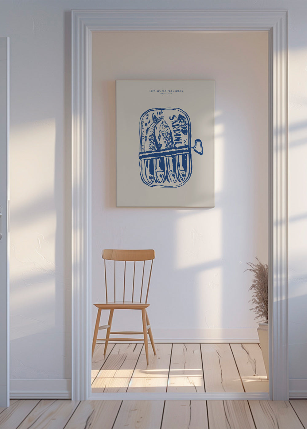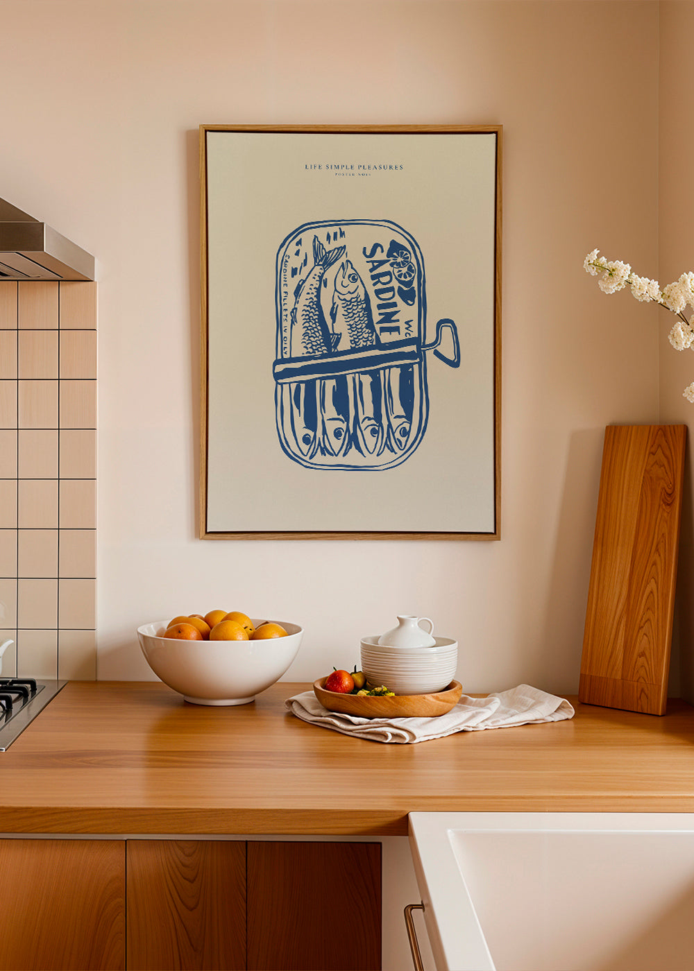 Ein Wandbild aus der Kollektion essen- und trinken-poster, von Seven Wall Art, mit Farbverlauf blau, und mit Ausrichtung vertikal. Suche schöne Kunstwerke für deine Küche aus und kombiniere sie mit anderer +Küchen-Deko+. Unverfälschte Kunst und authentisches Design.