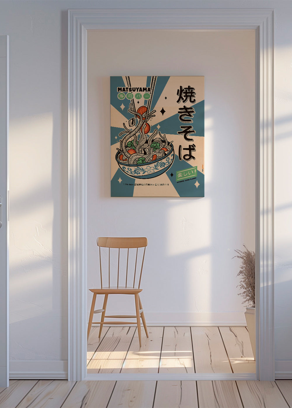 Ein Poster inspiriert durch die Kollektion von japan-bilder und poster, von Rafa Gomes, mit Farbverlauf blau, und im Format vertikal. Verleihe deiner Inneneinrichtung mit diesem Wandbild im Retro-Style, in Kombination mit anderen, einen schönen Vintage-Touch. Ein moderner Touch für deine Wohnung.
