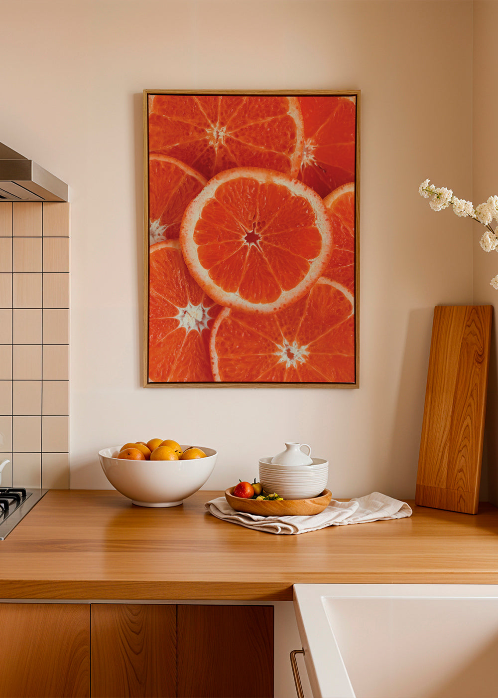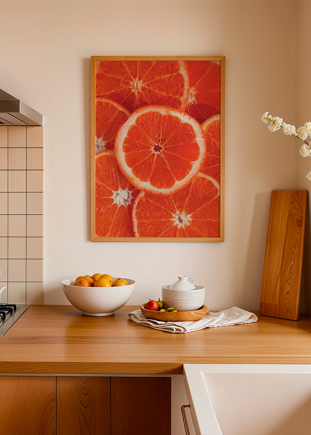 Ein Poster Im Stil unserer früchte-bilder und poster mit obst-motiven, kreiert von Studio Artesta, mit Pigmenten Orange, und im Format Vertikal. Wandbilder für die Küche sind perfekt, um diesen Wohnbereich gemütlicher zu gestalten. Das Bild, auf das deine Wand gewartet hat.