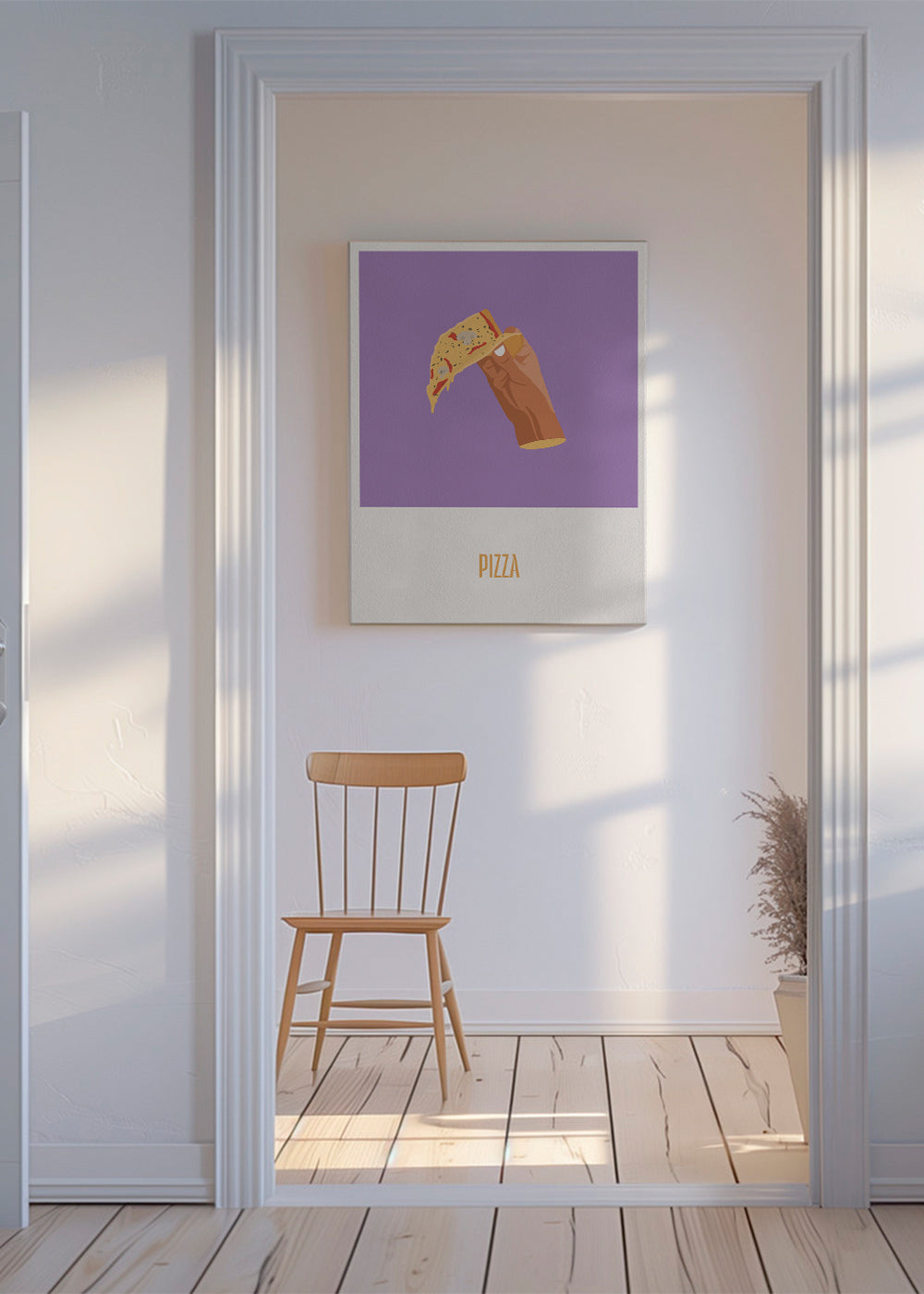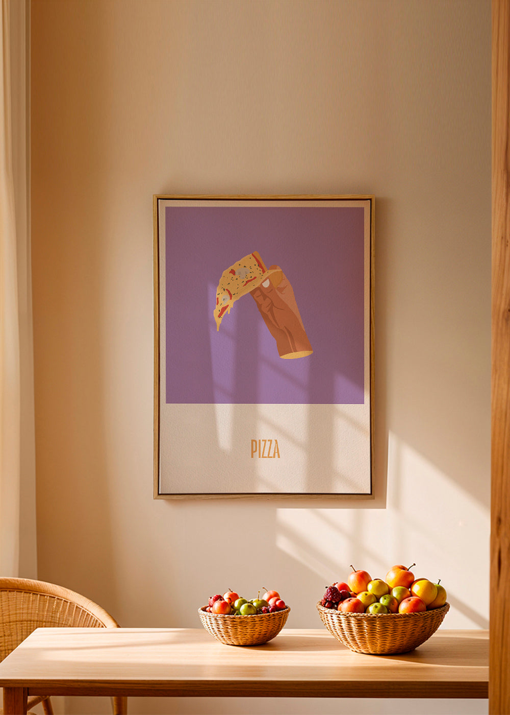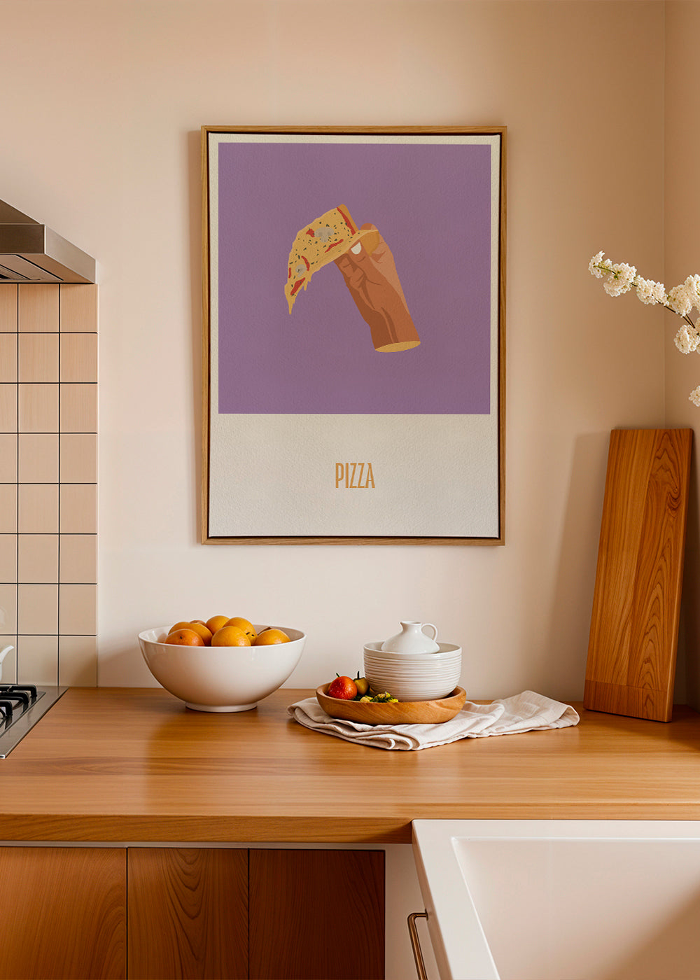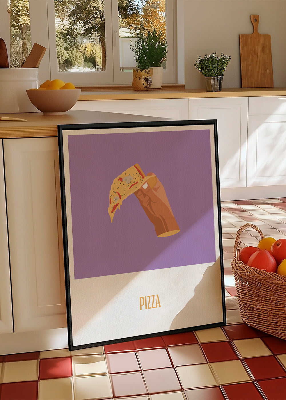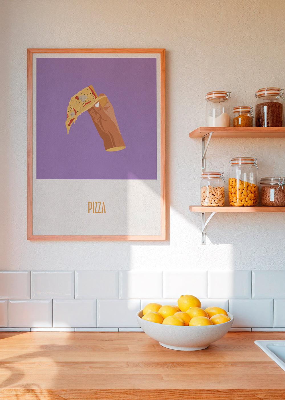 Ein Poster aus unserer Kunstauswahl pizza-bilder und poster mit pizza-motiven, kreiert von Nerea Ramírez, mit Nuancen Purpur, und geeignet für Bildpositionen Vertikal. Auch die Küche kann ein fröhlicher Ort sein – lasse dich von unseren Küchenpostern und +Wandbildern mit Küchenmotiven+ inspirieren. Das perfekte Kunstwerk, um deine Wohnung zu verschönern.