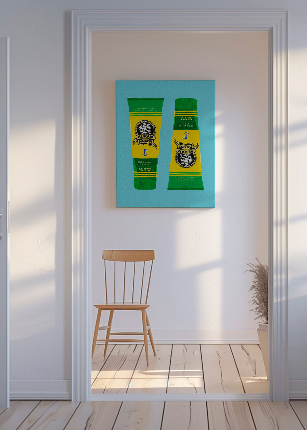 Das Passepartout ist eine weiße, matte Pappe, die das Poster umgibt, um es vor Methacrylat zu schützen, und die auch die Ausdruckskraft der Arbeit verstärkt und Details hervorhebt.