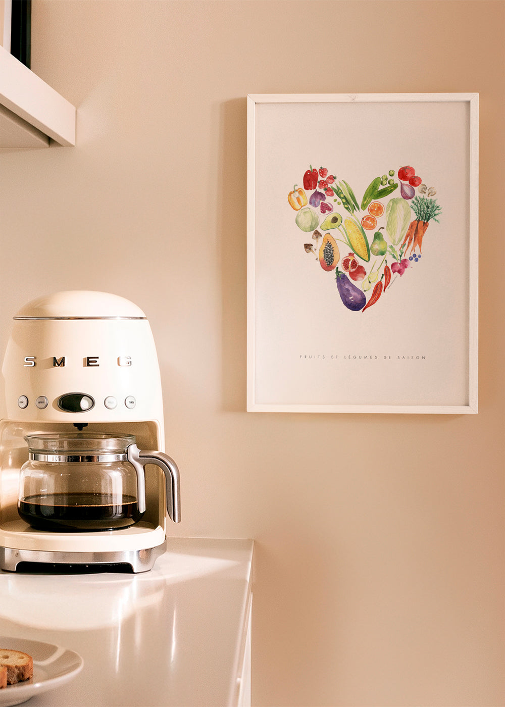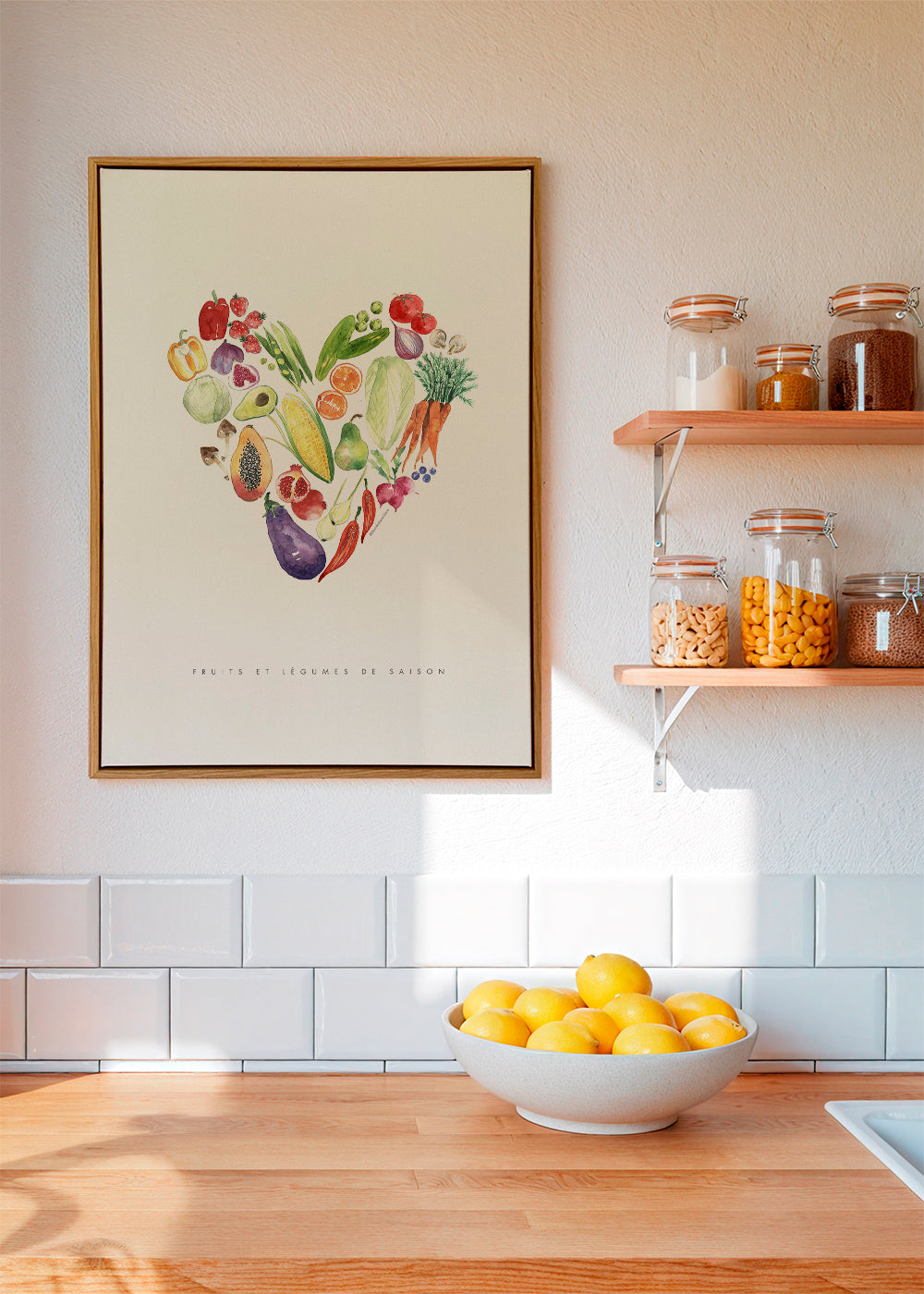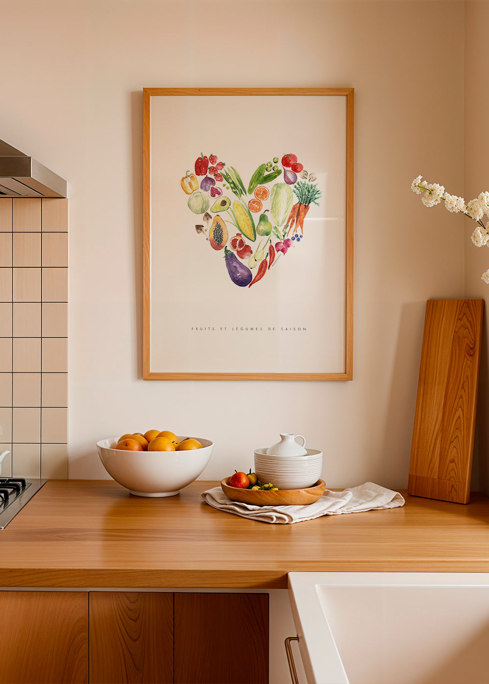 Ein Wandbild Im Stil unserer herz-poster, Originalbild von Mercedes Lopez Charro, mit Farben Mehrfarbig, und im Format Vertikal. Auch die Küche sollte ein gemütlicher Ort sein – mit diesem stilvollen Küchenbild kannst du deine +Küchenwand neu gestalten+. Gestalte einen einzigartigen Bereich.