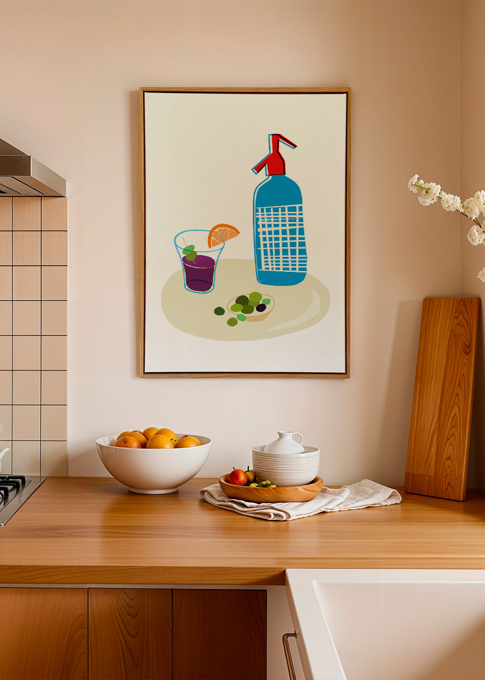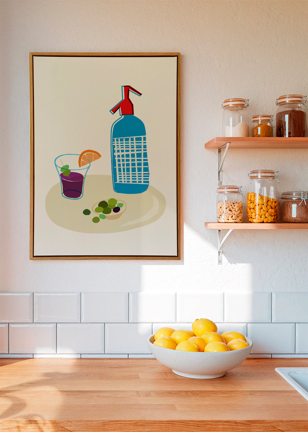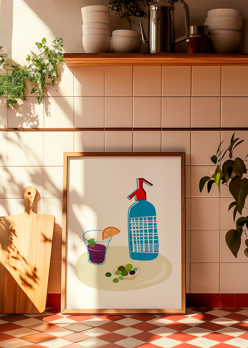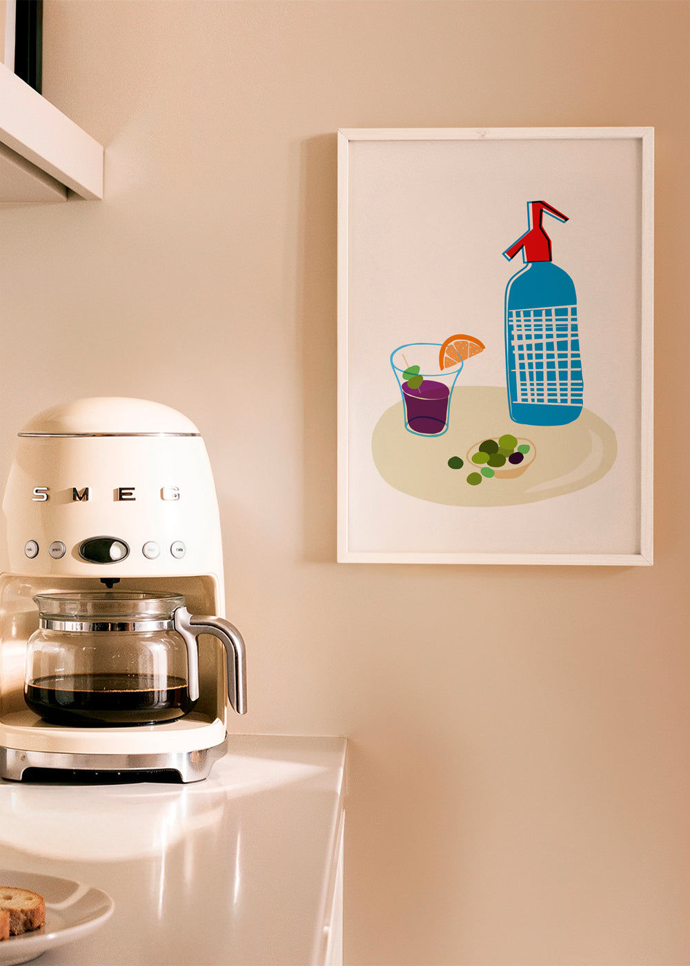 Ein Kunstwerk Im Stil unserer cocktail-bilder und likör-poster, Originalbild von Nouveau Prints, mit Schattierungen Grau, und ideal für die Bildposition Vertikal. Suche schöne Kunstwerke für deine Küche aus und kombiniere sie mit anderer +Küchen-Deko+. Ein wunderschönes Design, genau nach deinem Geschmack.