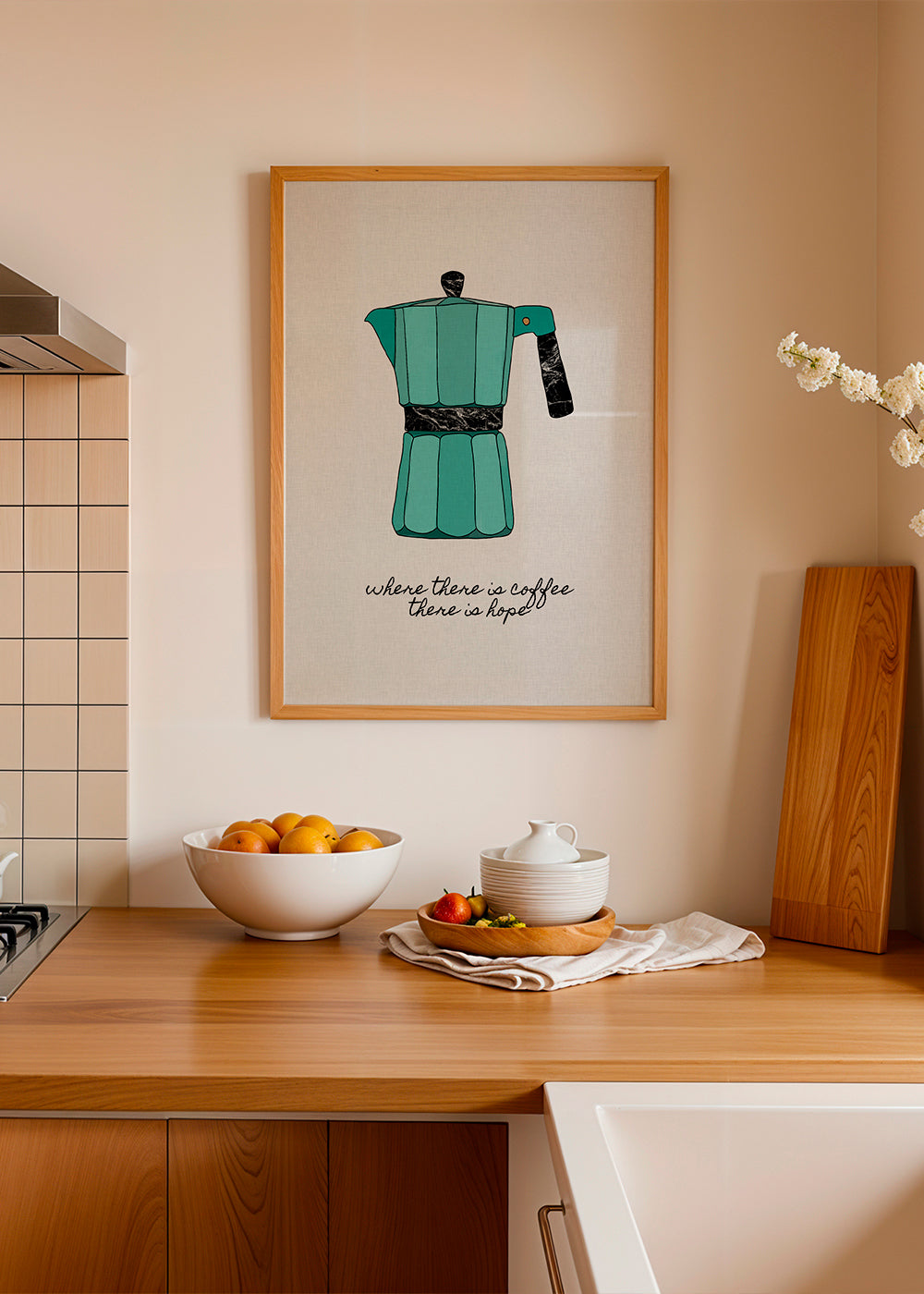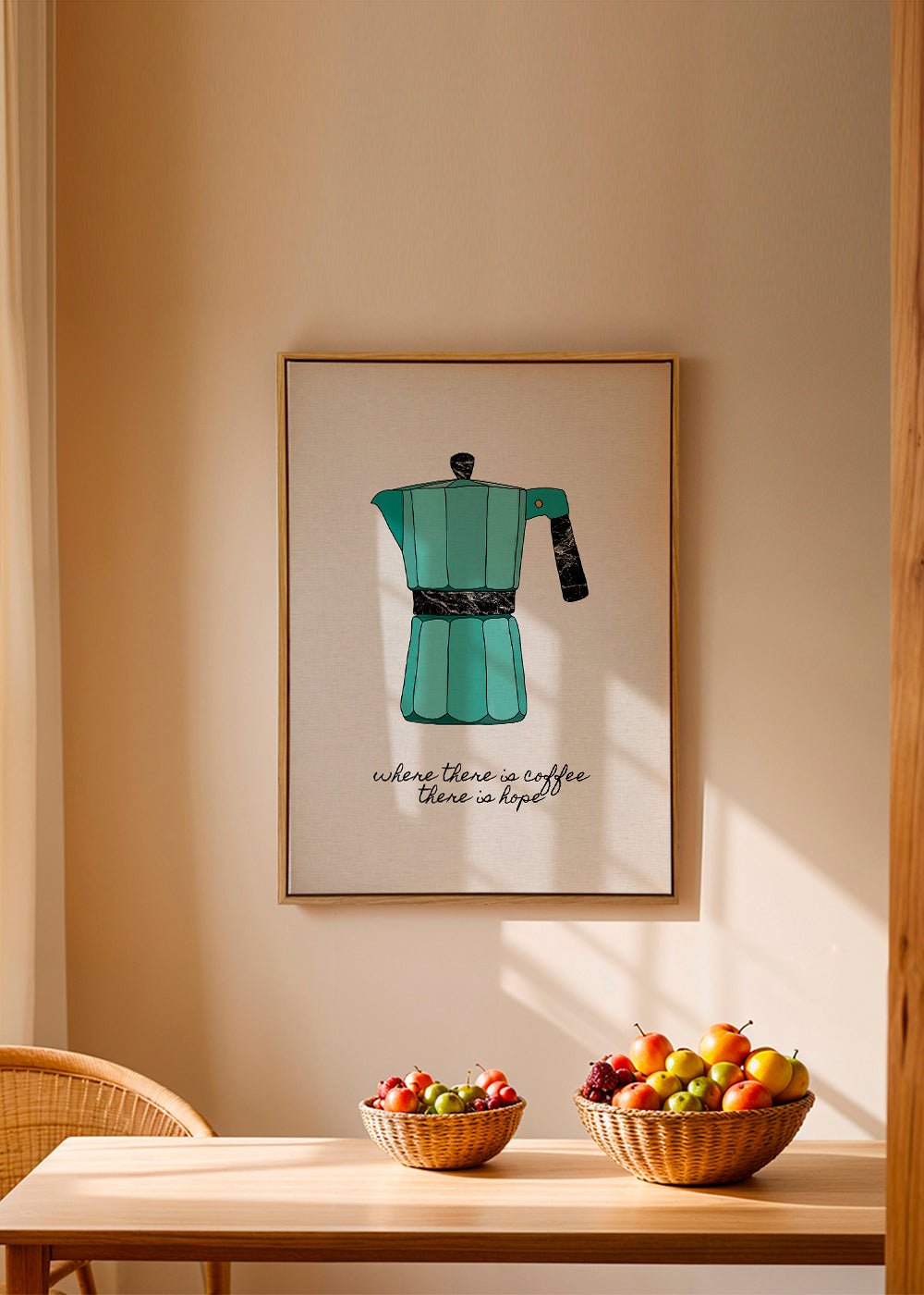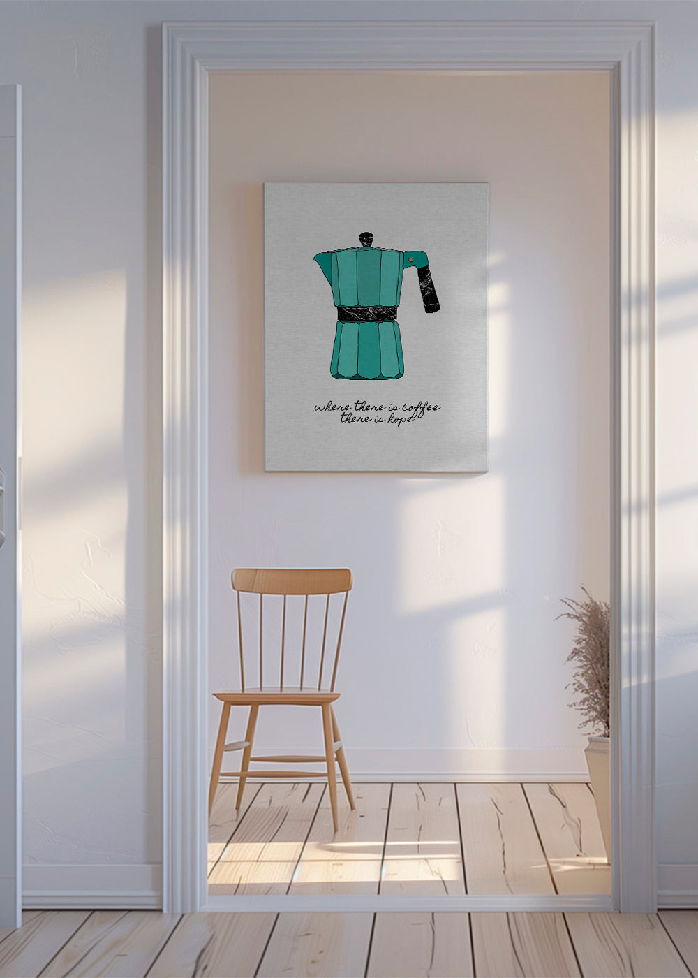 Ein Wandbild gehört zum Thema kaffee-poster und bilder mit kaffee-motiven, designed von Orara Studio, in den Farbtönen Grün, und für die Bildpositionen Vertikal. Wer behauptet, es sei schwer Küchenwände zu dekorieren? Dieses Bild ist perfekt für die +Wandgestaltung deiner Küche+. Das i-Tüpfelchen für einen gelungenen Einrichtungsstil.