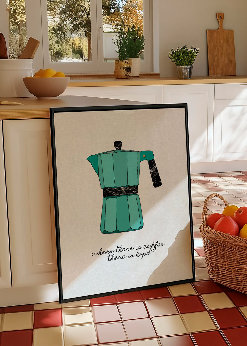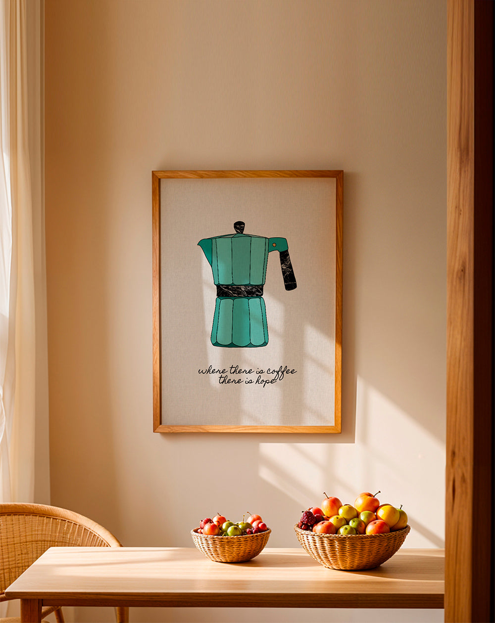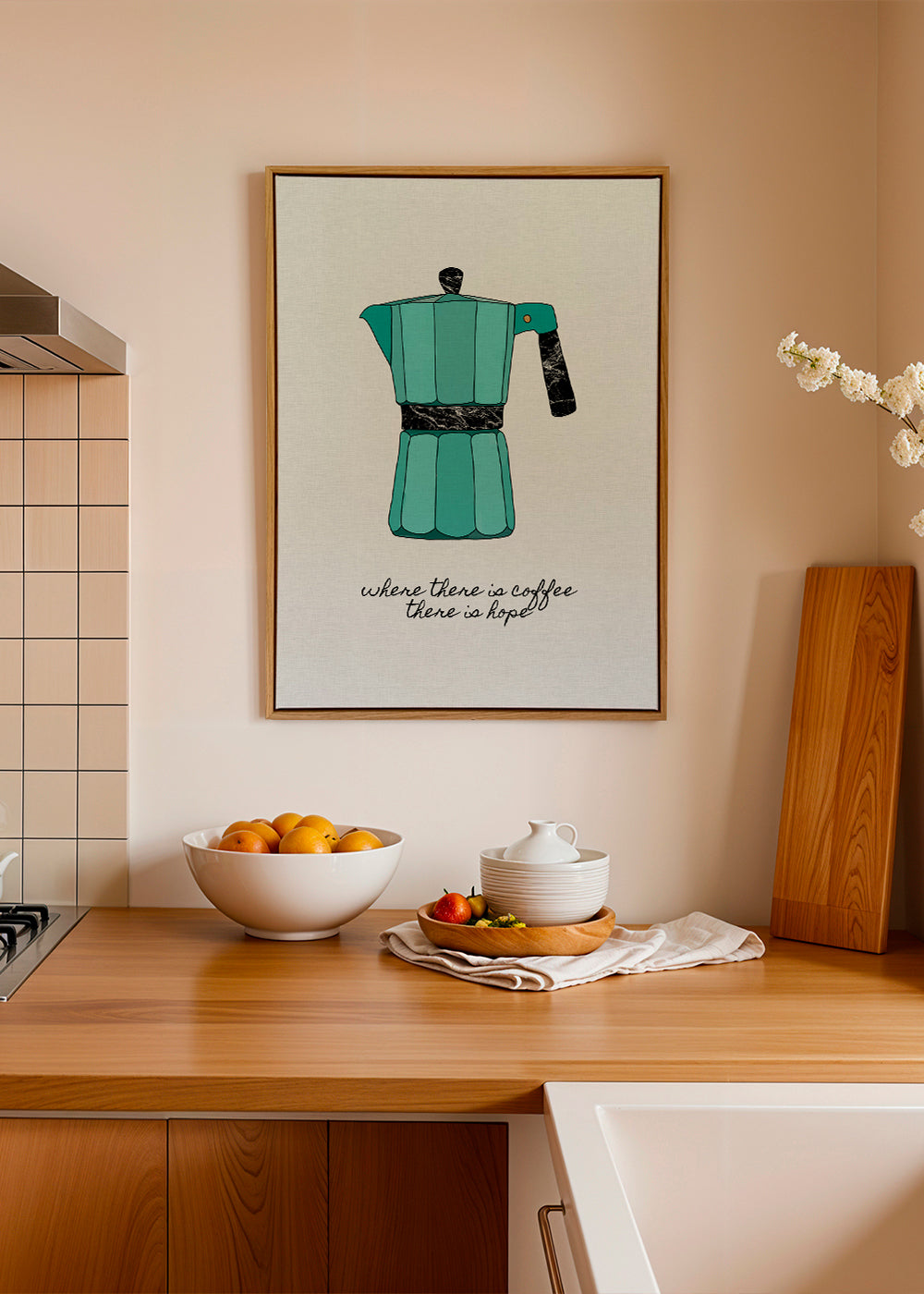 Ein Wandbild gehört zum Thema kaffee-poster und bilder mit kaffee-motiven, designed von Orara Studio, in den Farbtönen Grün, und für die Bildpositionen Vertikal. Wer behauptet, es sei schwer Küchenwände zu dekorieren? Dieses Bild ist perfekt für die +Wandgestaltung deiner Küche+. Das i-Tüpfelchen für einen gelungenen Einrichtungsstil.