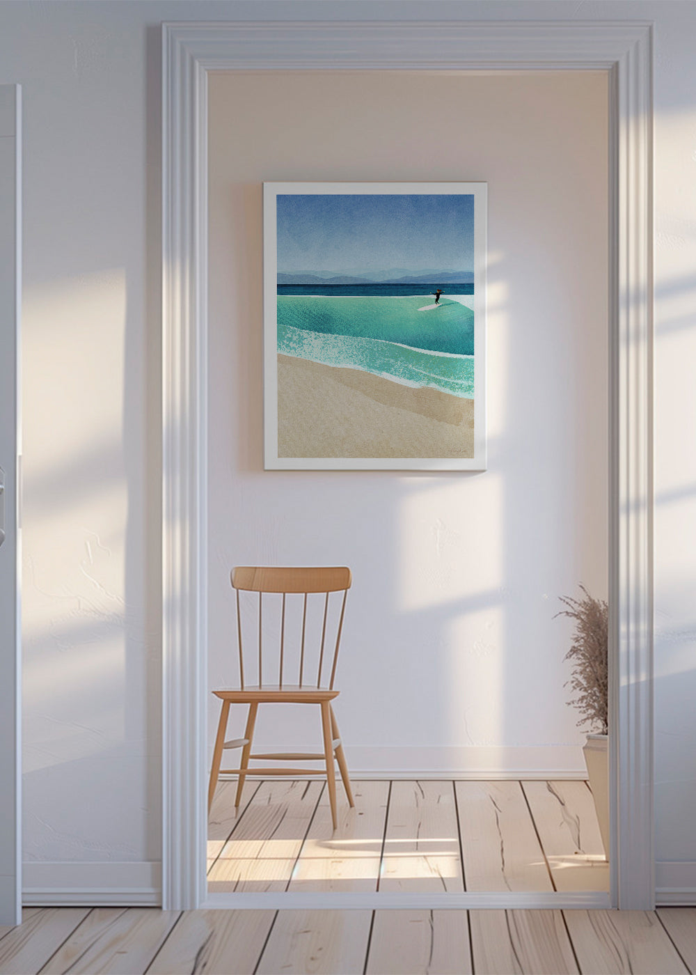Das Passepartout ist eine weiße, matte Pappe, die das Poster umgibt, um es vor Methacrylat zu schützen, und die auch die Ausdruckskraft der Arbeit verstärkt und Details hervorhebt.
