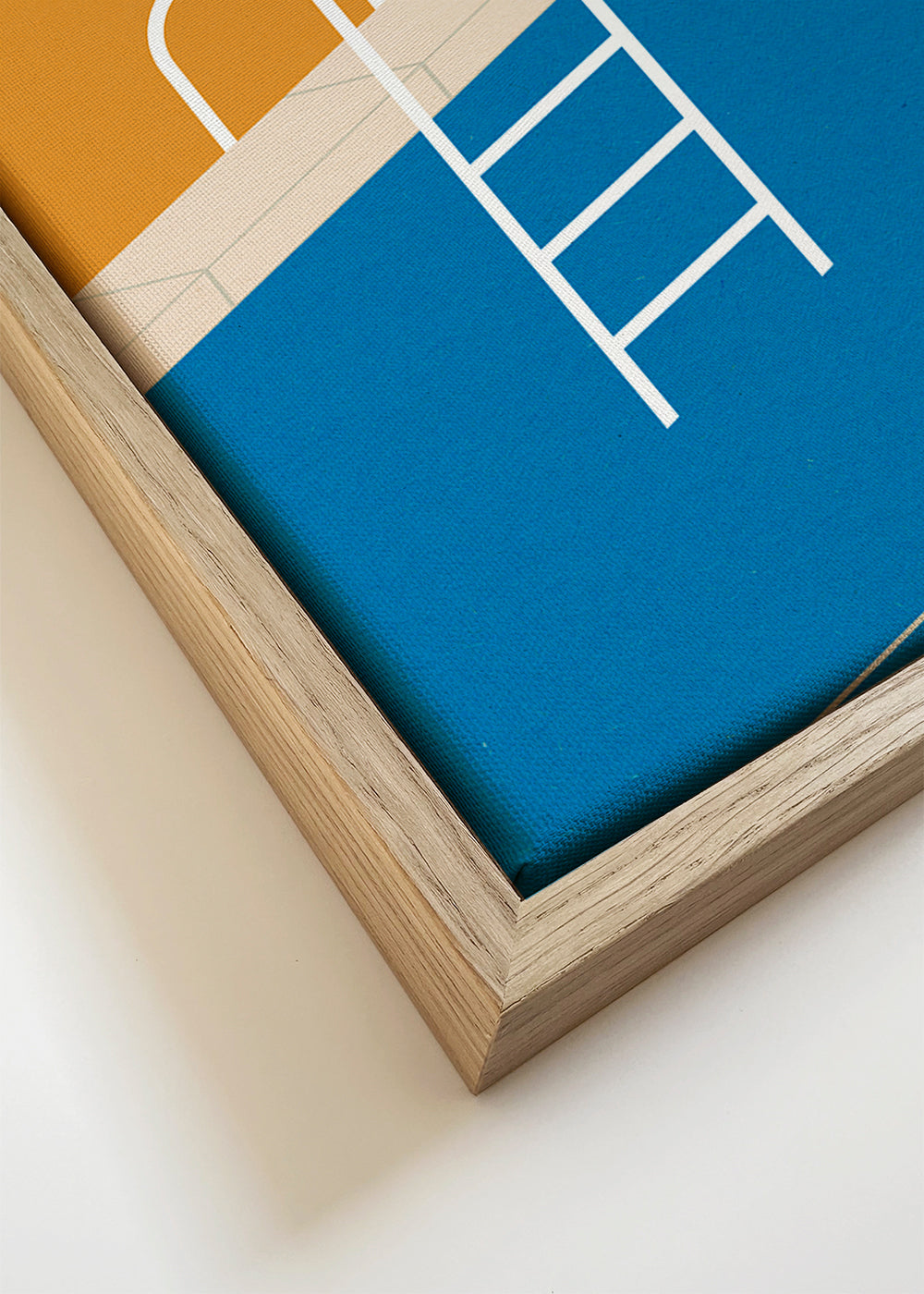 Alle unsere Rahmen werden in Spanien hergestellt. Die weißen, schwarzen und Eichenrahmen sind aus Ayous-Holz gefertigt, und die Eichenrahmen sind mit Eiche furniert, während die metallischen Rahmen aus Aluminium sind.