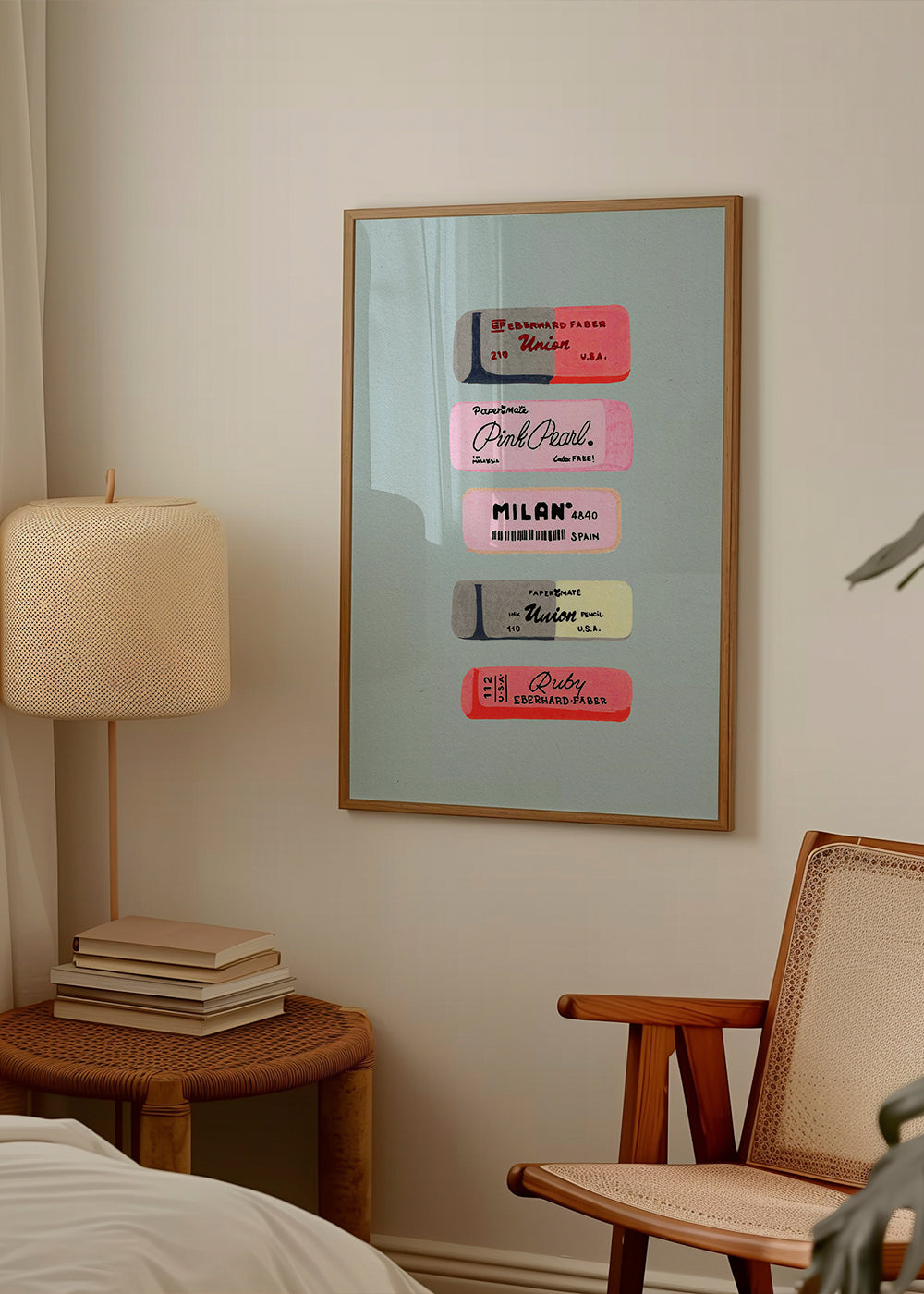 Minimalist Poster Erasers Art Print - Studio Mandariini