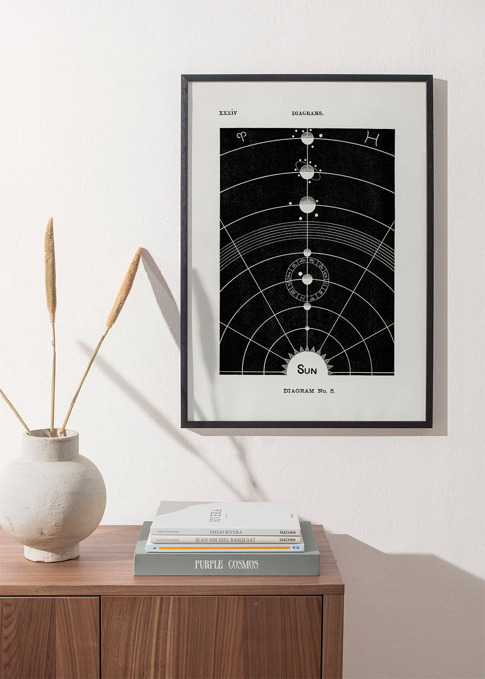 Schöner Kunstdruck gehört zum Thema weltraum-poster und wandbilder, designed von 1x, mit Nuancen schwarz, und im Format vertikal. Verleihe deiner Inneneinrichtung mit diesem Wandbild im Retro-Style, in Kombination mit anderen, einen schönen Vintage-Touch. Kreative Wandgestaltung.