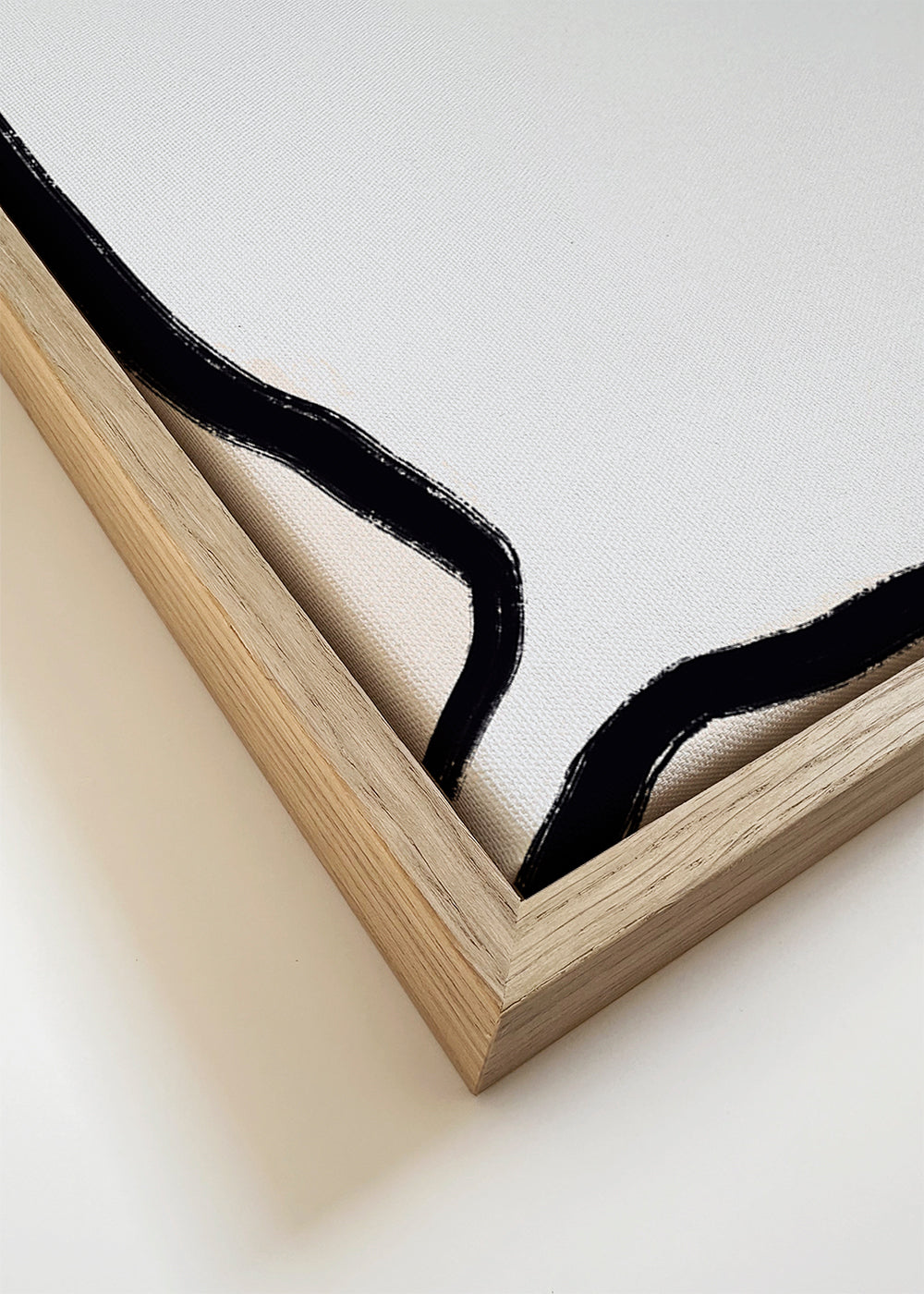 Alle unsere Rahmen werden in Spanien hergestellt. Die weißen, schwarzen und Eichenrahmen sind aus Ayous-Holz gefertigt, und die Eichenrahmen sind mit Eiche furniert, während die metallischen Rahmen aus Aluminium sind.