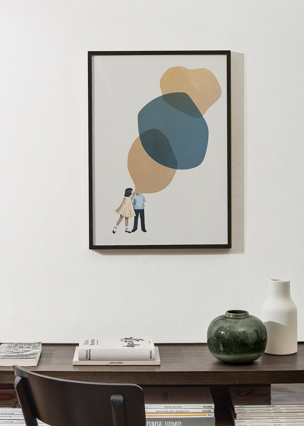 Wenn Sie einen unserer Drucke mit einem der von uns angebotenen Rahmen kombinieren, erhalten Sie die Drucke gerahmt und fertig zum Aufhängen. Falls Sie den Druck und den Rahmen separat kaufen oder Ihre eigenen Drucke hinzufügen möchten, öffnen Sie die hinteren Enden, entfernen Sie die Abdeckung und legen Sie Ihr Blatt bei. Ganz einfach!
