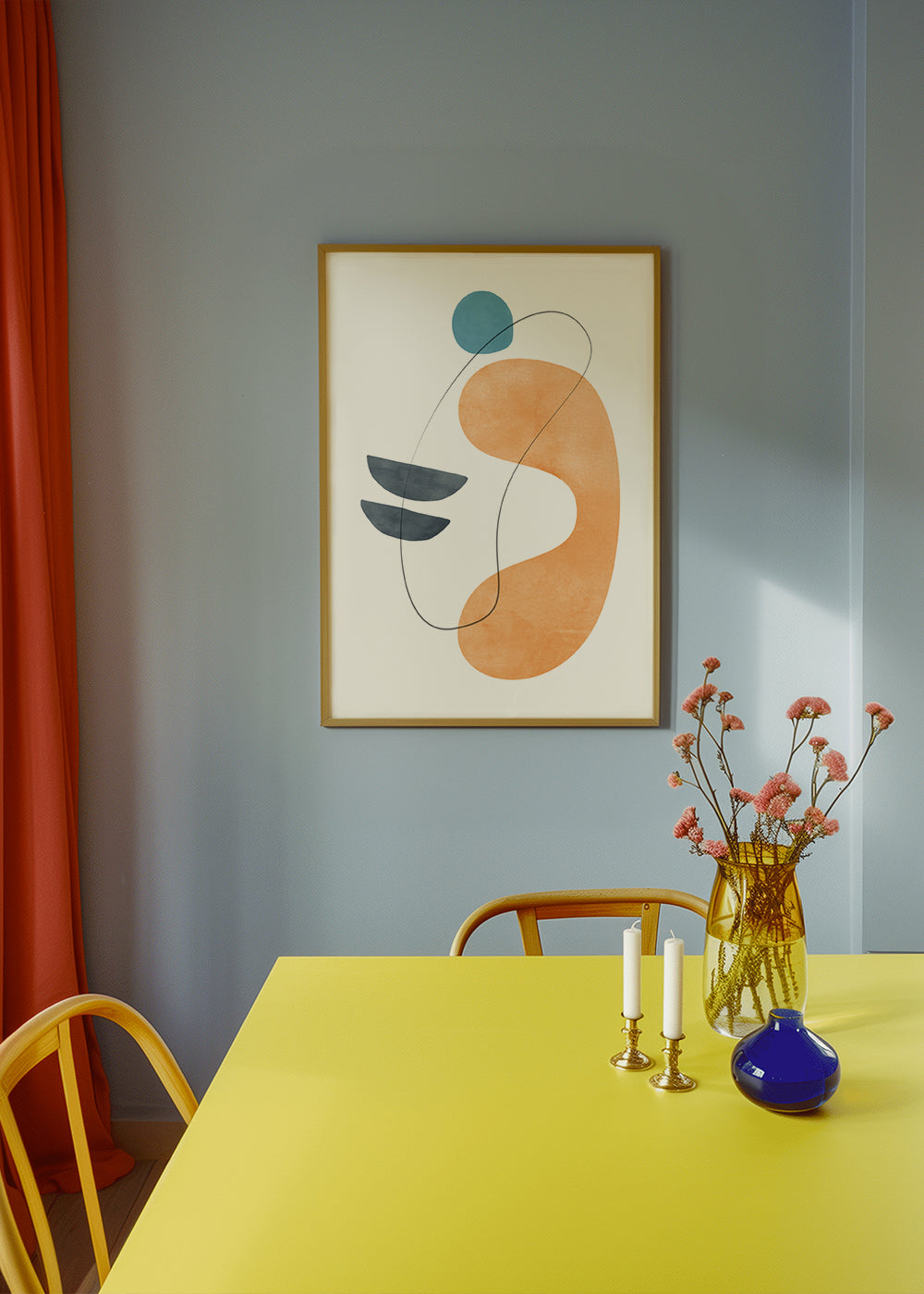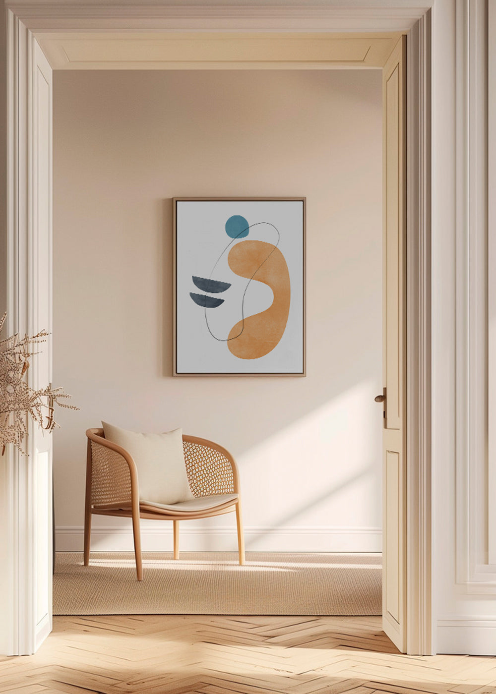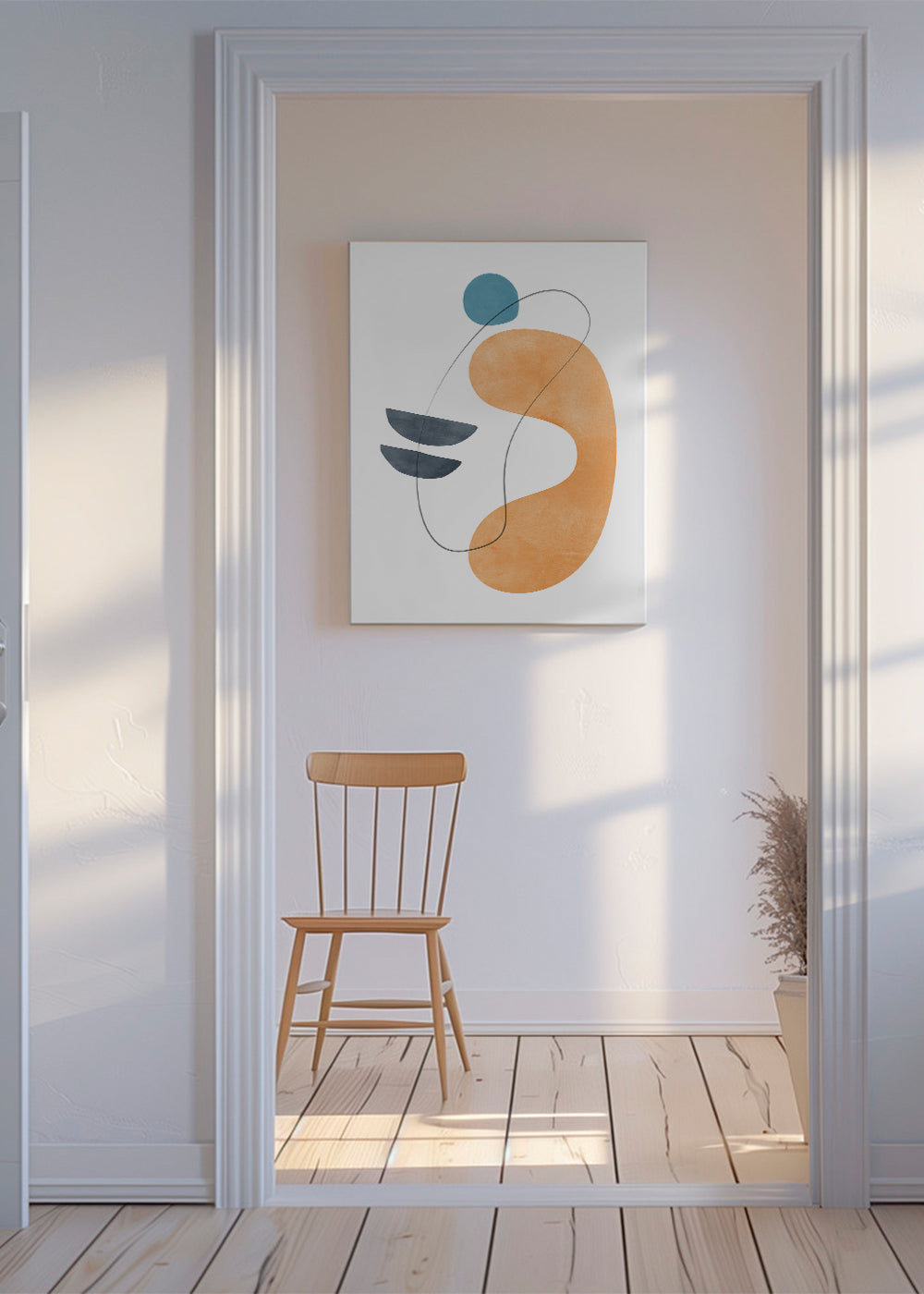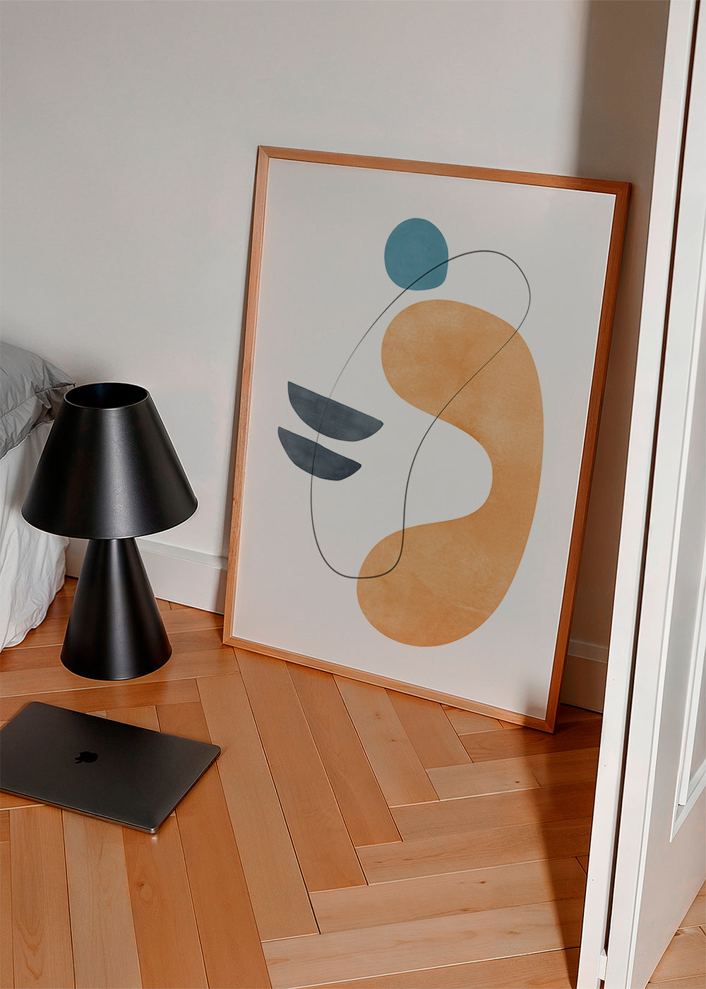 Ein Wandbild aus der Kollektion von geometrische bilder, kreiert von Nouveau Prints, mit Farbnuance Blau, und ideal für die Bildposition Vertikal. Der Kunstdruck mit abstrakten Formen lässt sich hervorragend mit geometrischen Formen und abstrakter Kunst kombinieren. Das Bild, auf das deine Wand gewartet hat.