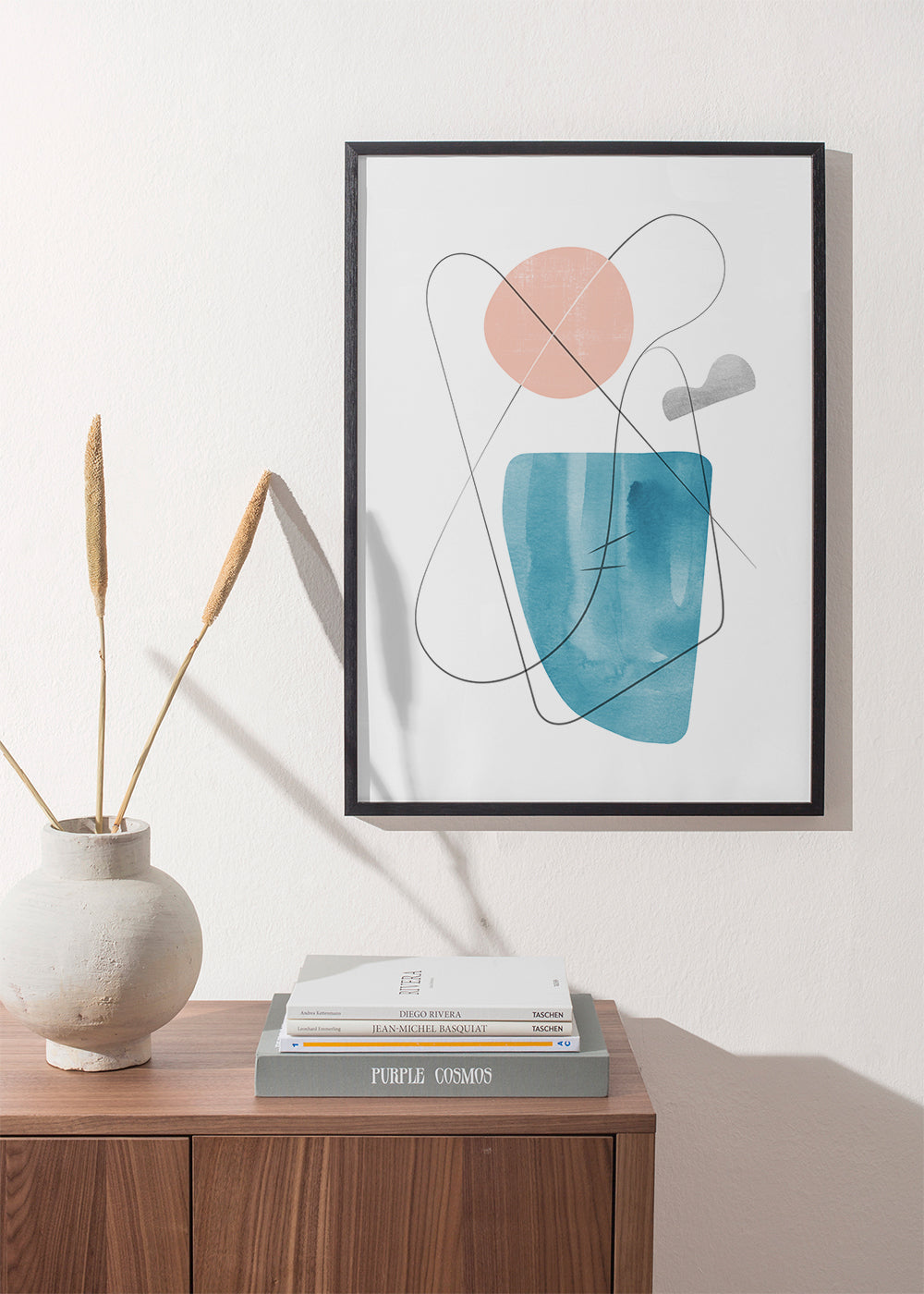 Schönes Designs aus unserer Themengruppe geometrische bilder, designed von Nouveau Prints, mit Farbtönen Blau, und mit Bildposition Vertikal. Abstrakte und geometrische Formen erzeugen ein verspieltes, kreatives Ambiente. Hänge ein paar neue Bilder an die Wand und schon sieht der Raum ganz anders aus.