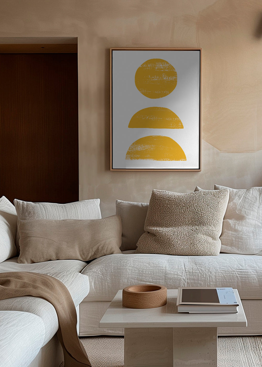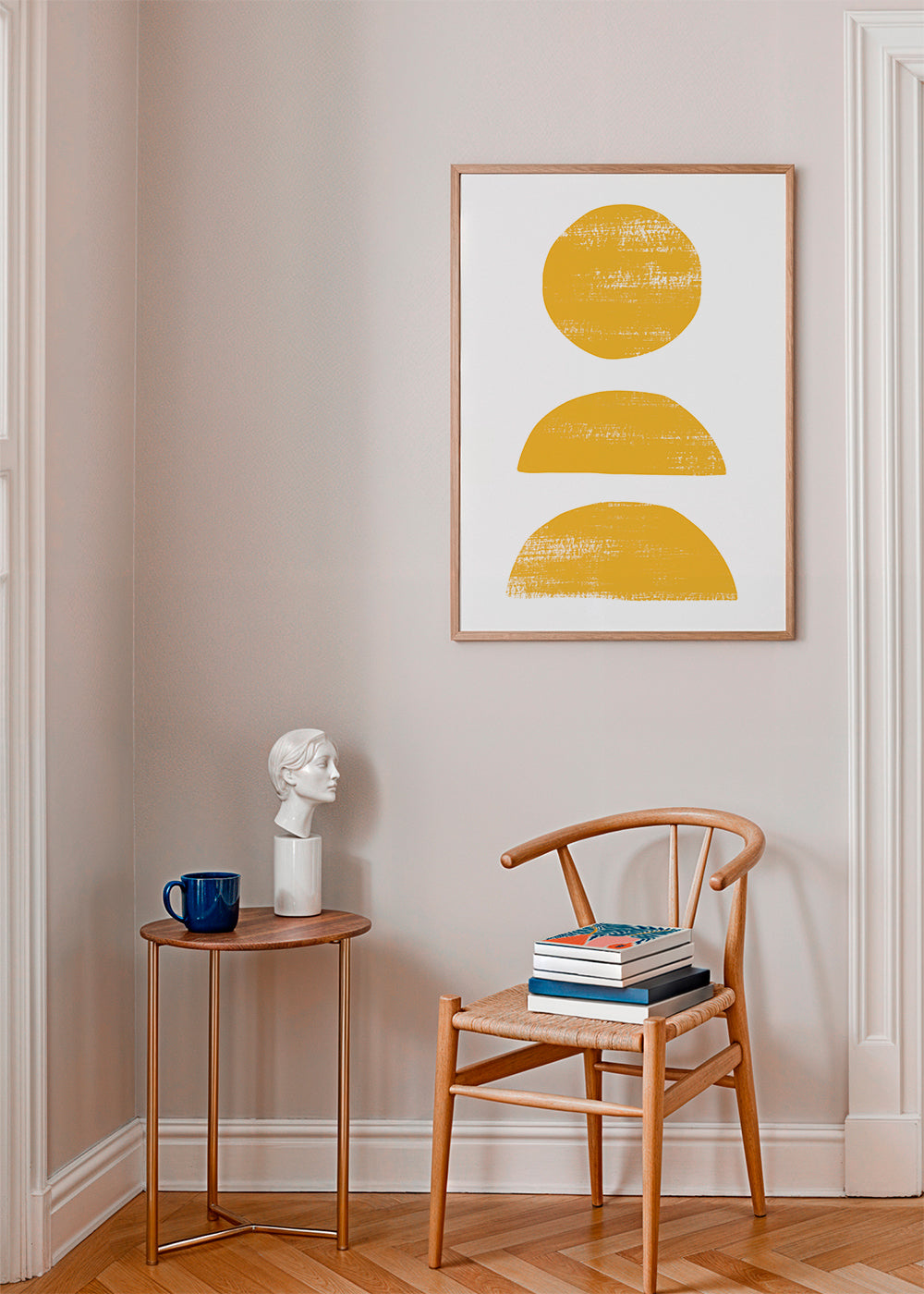 Ein Wandbild aus der Kollektion von geometrische bilder, von Nouveau Prints, mit Nuancen Gelb, und geeignet für Bildpositionen Vertikal. Geometrische Kunst ist eine elegante Stilrichtung für die Dekoration der Wände zu Hause. Neue Wandbilder können deinem Wohnraum einen frischen Look verleihen.