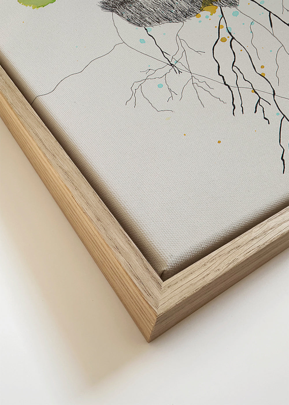 Alle unsere Rahmen werden in Spanien hergestellt. Die weißen, schwarzen und Eichenrahmen sind aus Ayous-Holz gefertigt, und die Eichenrahmen sind mit Eiche furniert, während die metallischen Rahmen aus Aluminium sind.
