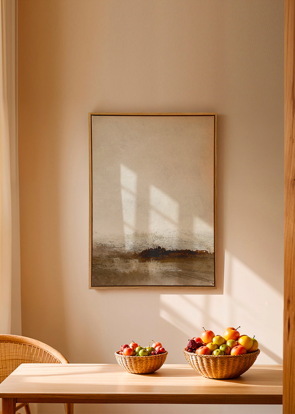 Wenn Sie die Passepartout-Option wählen, fügen wir die weiße matte Platte dem Rahmen hinzu und reduzieren das Design der Arbeit. Wählen Sie beispielsweise ein Druckformat 50x70 cm, mit eichenfarbenem Rahmen und Passepartout, reduzieren wir das Design des Druckes auf das bisherige Format (40x50cm). So passt es sich perfekt an das Innenfenster des Passepartouts an.