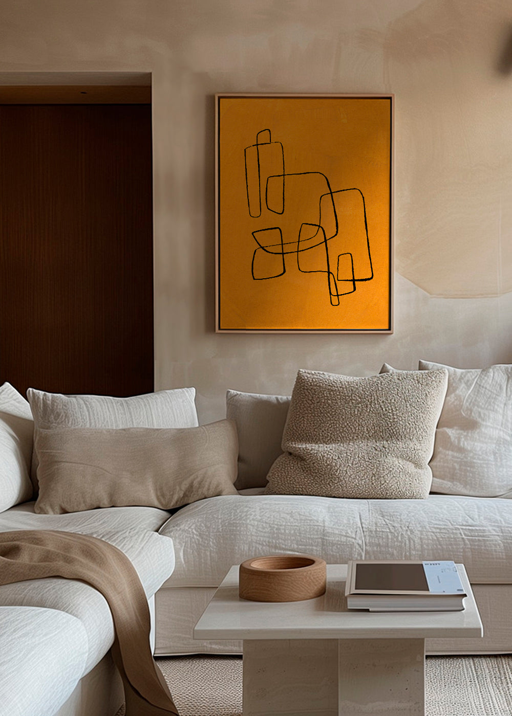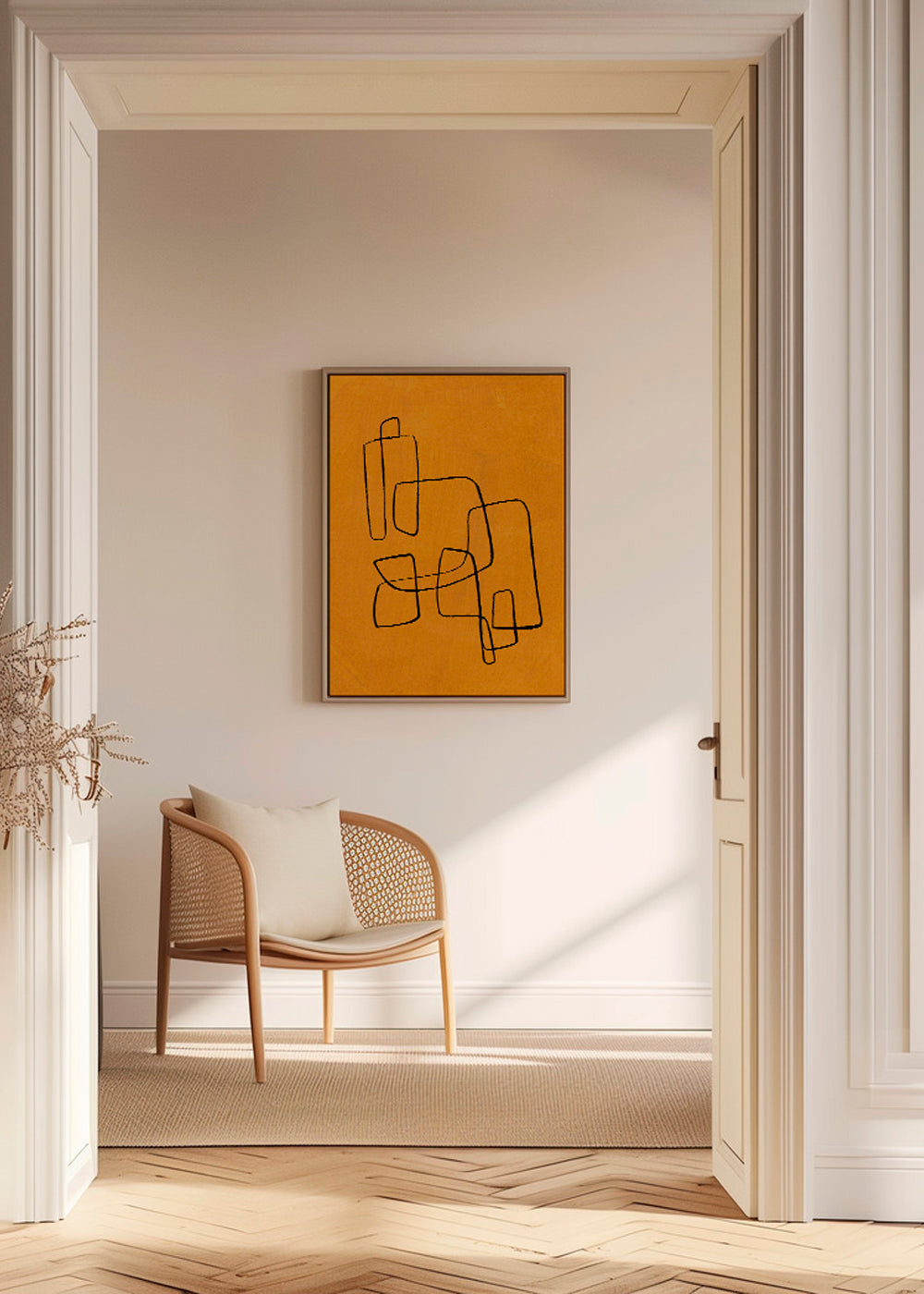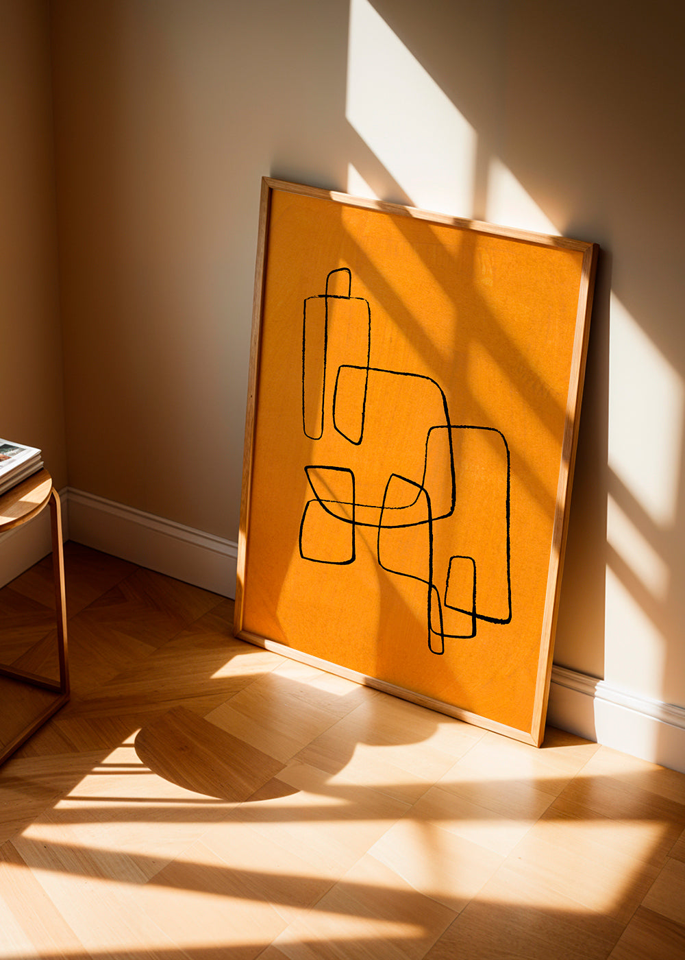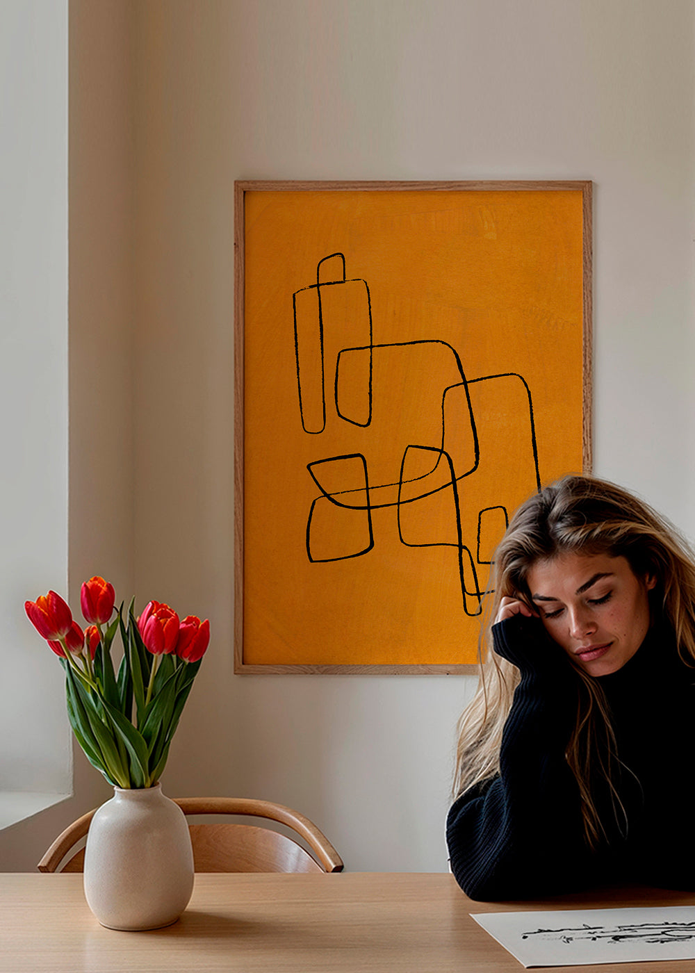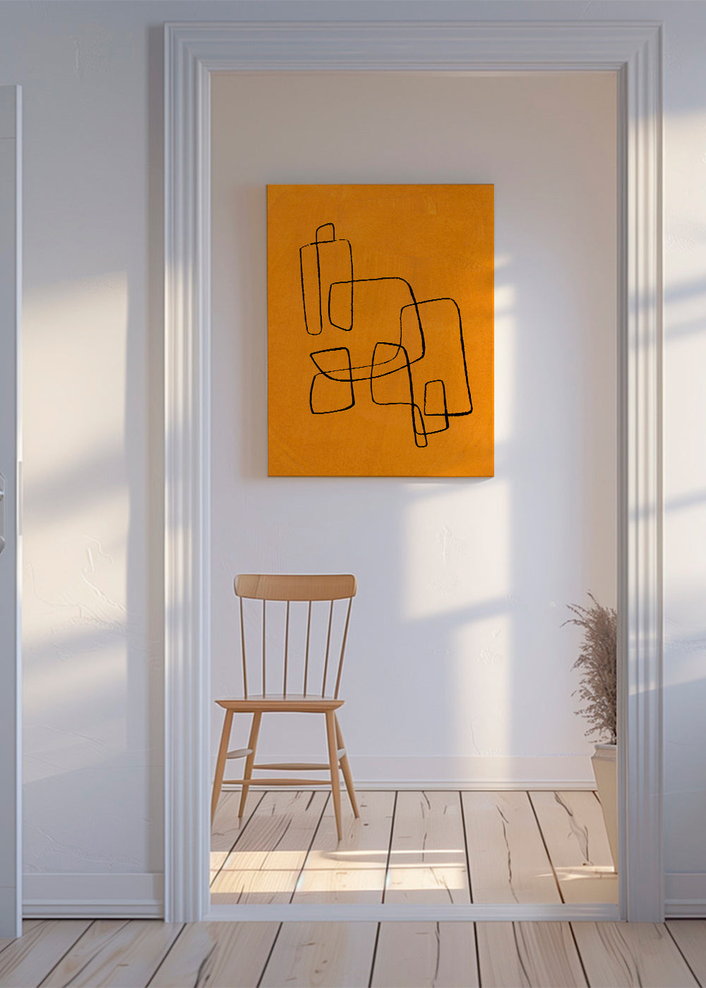 Schönes Poster aus unserer Kollektion von line-art-bilder, Künstlern 1x, mit Nuancen gelb, und für die Bildpositionen vertikal. Das perfekte Design für die Wandbilder-Deko von modernen Wohnräumen. Kombiniere das Wandbild mit anderen abstrakten Bildern für eine Einrichtung im avantgardistischen Wohnstil. Frische und Originalität.