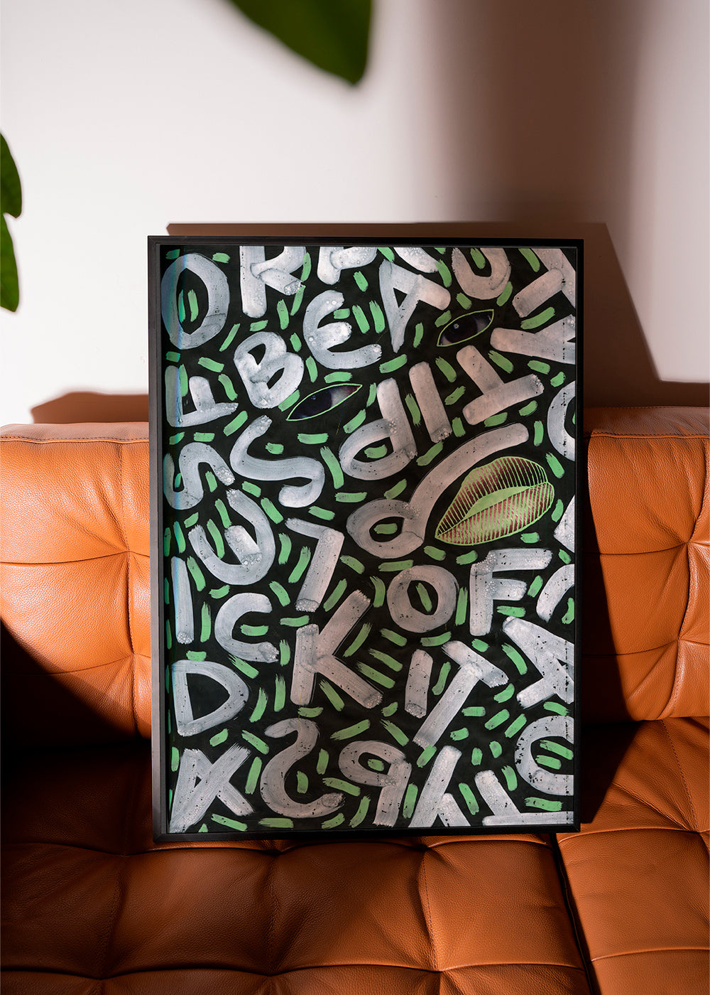 Das Passepartout ist eine weiße, matte Pappe, die das Poster umgibt, um es vor Methacrylat zu schützen, und die auch die Ausdruckskraft der Arbeit verstärkt und Details hervorhebt.