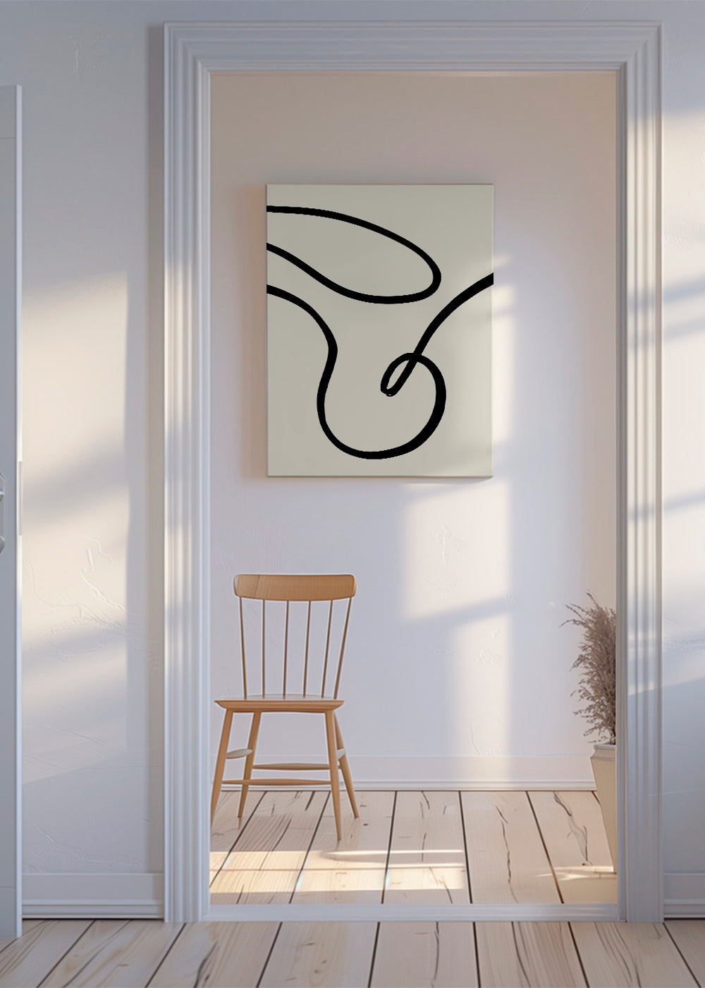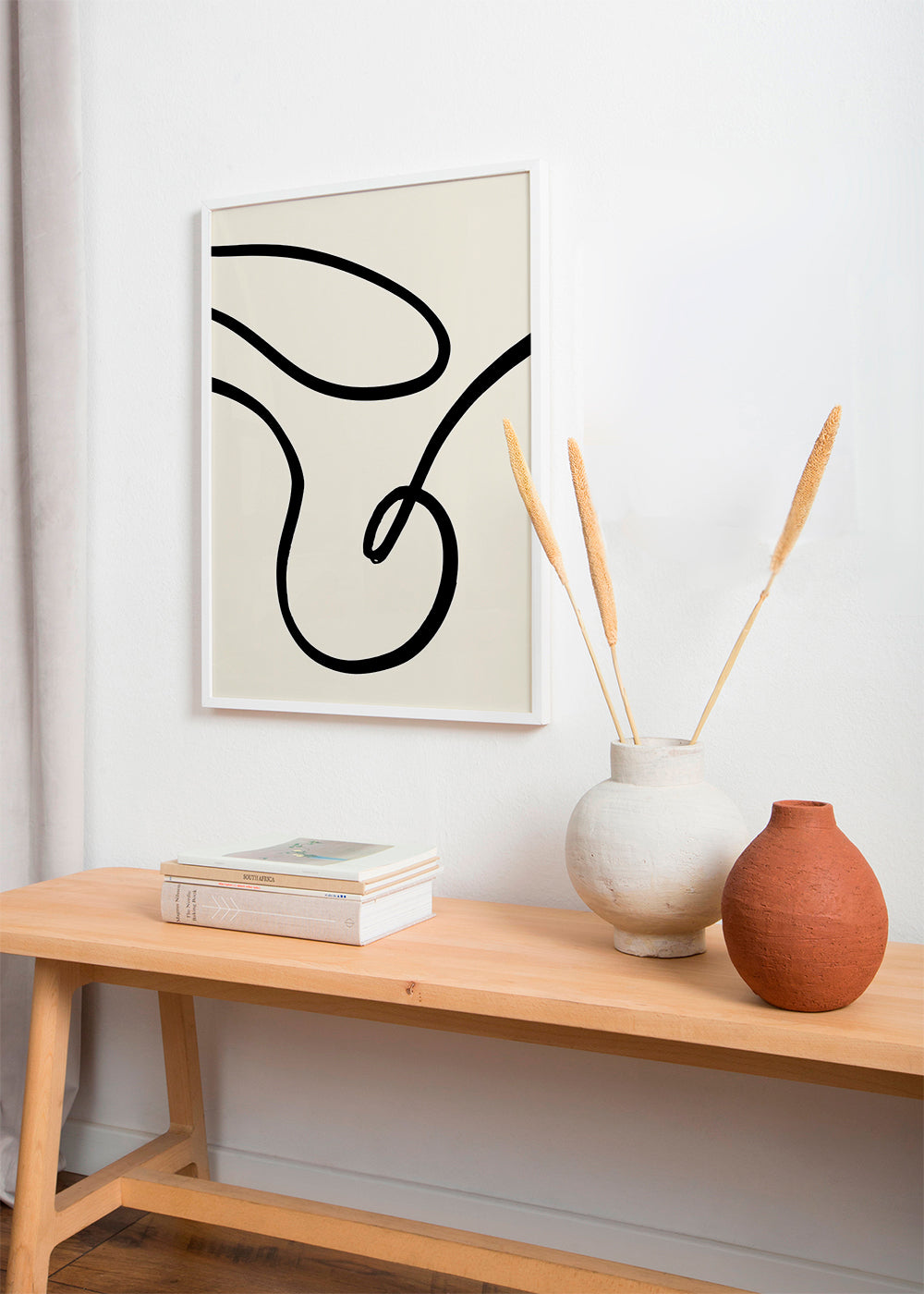 Ein Poster aus unserer Kunstauswahl line-art-bilder, mit Farben Schwarz, und ideal für die Bildposition Vertikal. Es ist ein abstraktes Kunstwerk, das perfekt zu jedem Wohnraum passt. Es gibt weder schöne noch hässliche Wände – es gibt nur dekorierte und leere Wände.