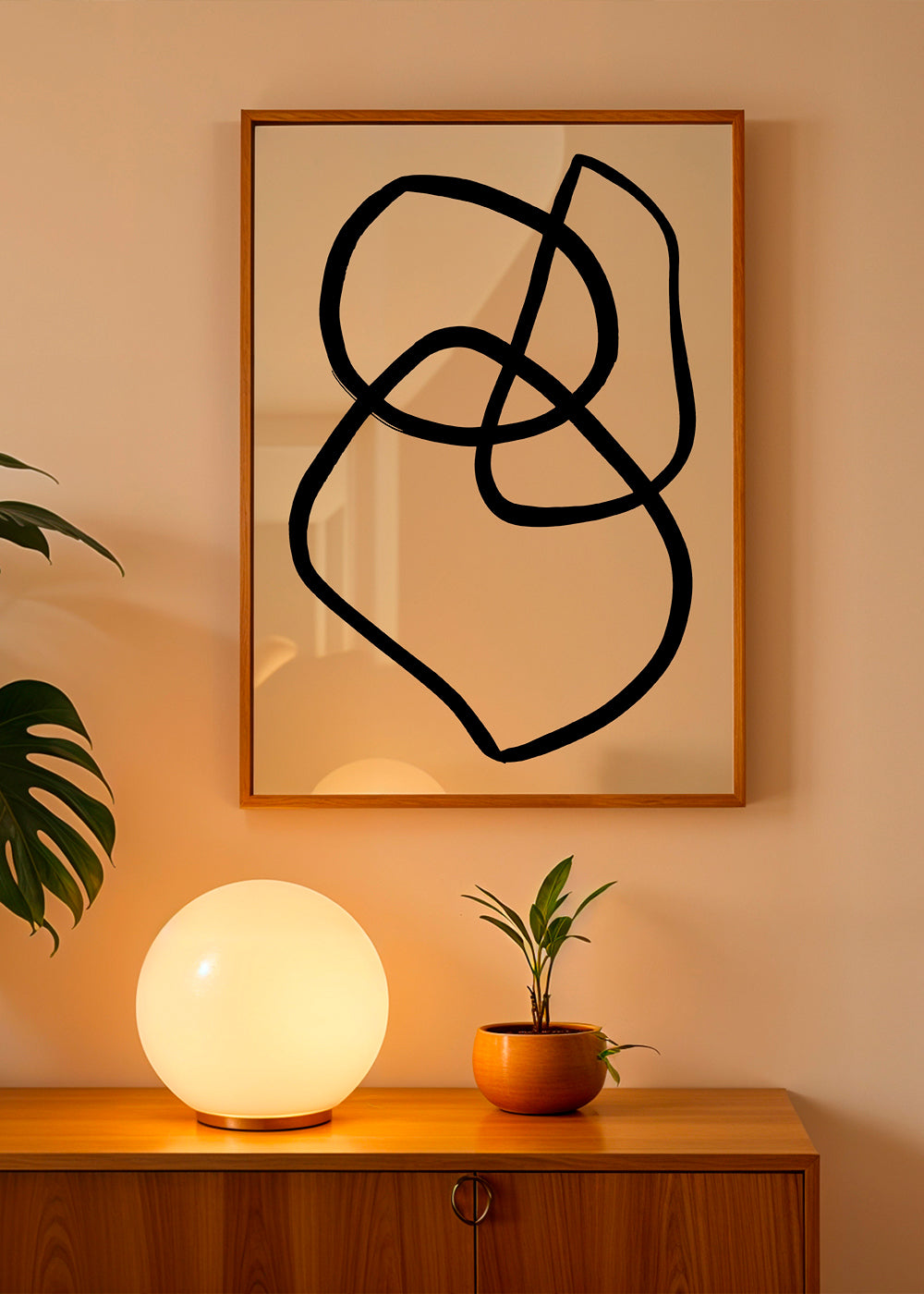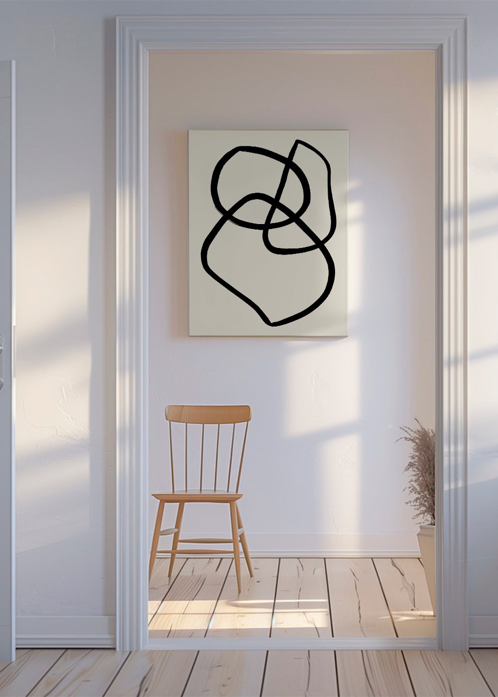 Dieses Poster aus unserer Kunstauswahl line-art-bilder, mit Farbverlauf Schwarz, und mit Ausrichtung Vertikal. Das perfekte Design für die Wandbilder-Deko von modernen Wohnräumen. Kombiniere das Wandbild mit anderen abstrakten Bildern für eine Einrichtung im avantgardistischen Wohnstil. Lasse deiner Kreativität freien Lauf und dekoriere deine Wände mit Kunst.