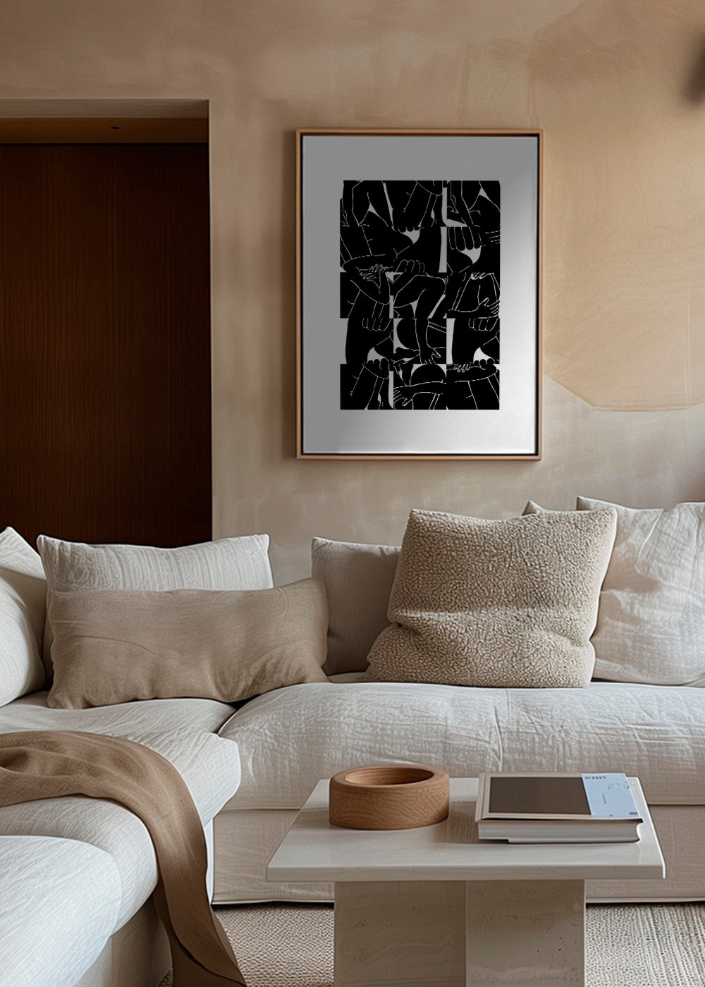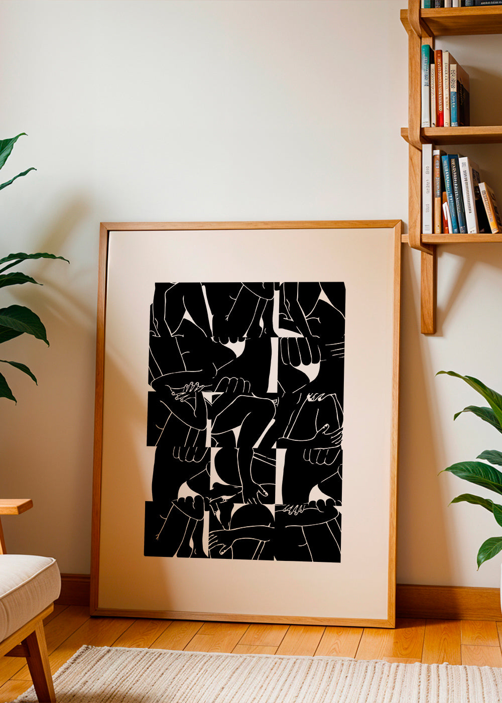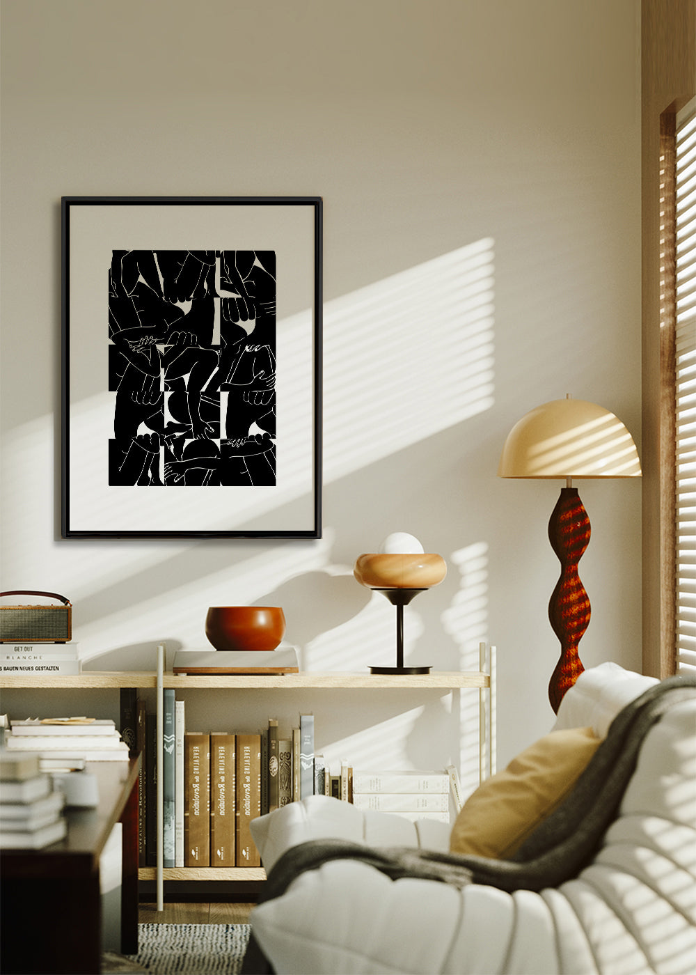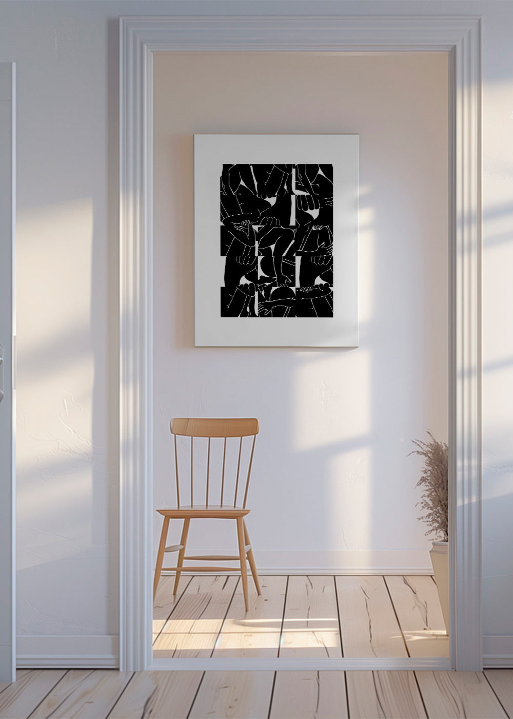 Ein Kunstwerk aus unserer Themengruppe geometrische bilder, aus der Kollektion des Künstlers Nordic Creators, mit Nuancen Schwarz-weiß, und geeignet für Bildpositionen Vertikal. Der Kunstdruck mit abstrakten Formen lässt sich hervorragend mit geometrischen Formen und abstrakter Kunst kombinieren. Kombiniere verschiedene Bilder, um eine Bilderwand nach deinem Stil zu gestalten.