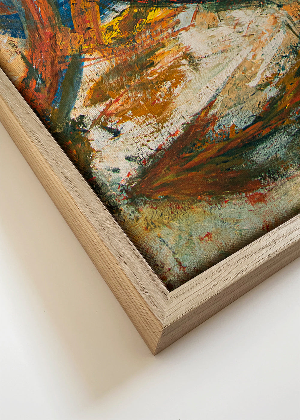 Wenn Sie die Passepartout-Option wählen, fügen wir die weiße matte Platte dem Rahmen hinzu und reduzieren das Design der Arbeit. Wählen Sie beispielsweise ein Druckformat 50x70 cm, mit eichenfarbenem Rahmen und Passepartout, reduzieren wir das Design des Druckes auf das bisherige Format (40x50cm). So passt es sich perfekt an das Innenfenster des Passepartouts an.
