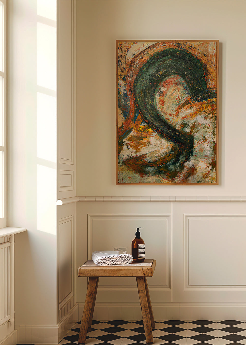 Ein Poster Im Stil unserer poster abstrakt, geschaffen von Elena Camacho Art, in den Farbtönen mehrfarbig, und im Format vertikal. Abstrakte Kunst inspiriert und regt uns an, über die Bedeutung der Werke nachzudenken. Gestalte einen einzigartigen Bereich.