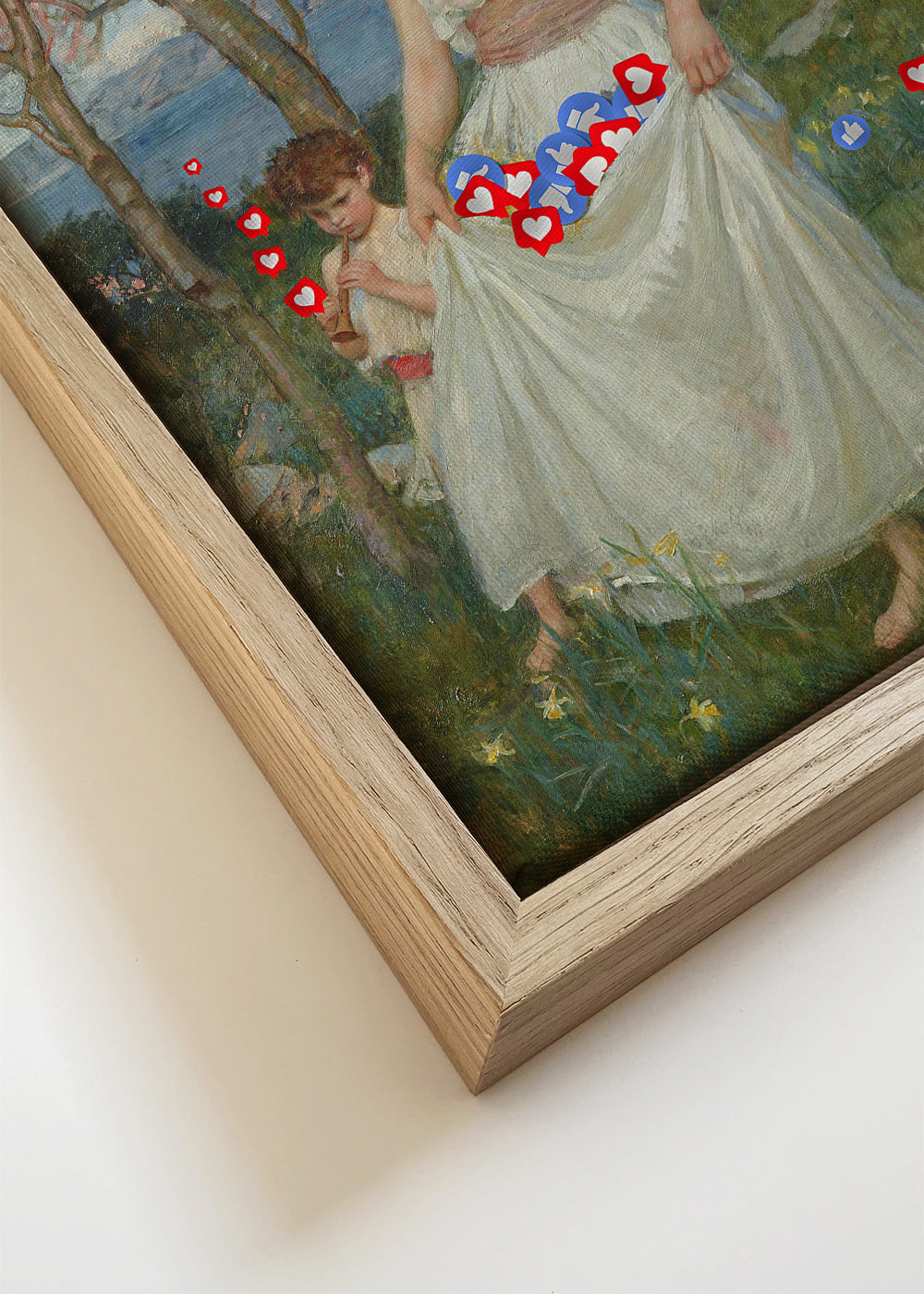 Wenn Sie die Passepartout-Option wählen, fügen wir die weiße matte Platte dem Rahmen hinzu und reduzieren das Design der Arbeit. Wählen Sie beispielsweise ein Druckformat 50x70 cm, mit eichenfarbenem Rahmen und Passepartout, reduzieren wir das Design des Druckes auf das bisherige Format (40x50cm). So passt es sich perfekt an das Innenfenster des Passepartouts an.