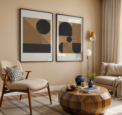 Ein Kunstdruck aus unserer Bilderauswahl geometrische bilder, kreiert von 1x, in den Farbtönen braun, und im Format vertikal. Abstrakte und geometrische Formen erzeugen ein verspieltes, kreatives Ambiente. Elegante Wände für schicke Wohnungen.