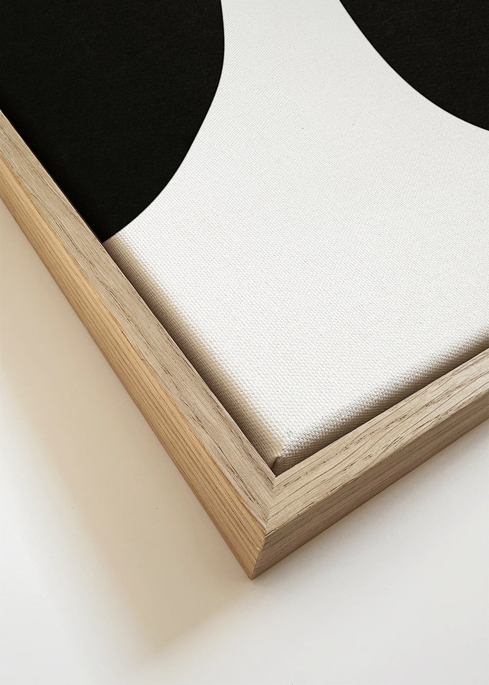 Alle unsere Rahmen werden in Spanien hergestellt. Die weißen, schwarzen und Eichenrahmen sind aus Ayous-Holz gefertigt, und die Eichenrahmen sind mit Eiche furniert, während die metallischen Rahmen aus Aluminium sind.