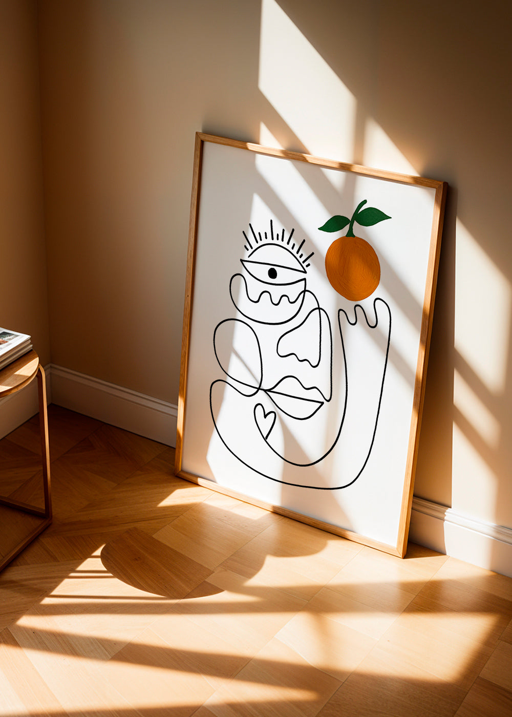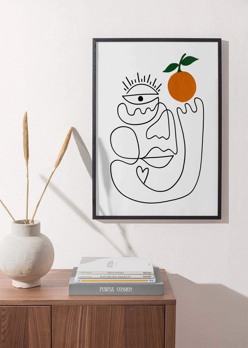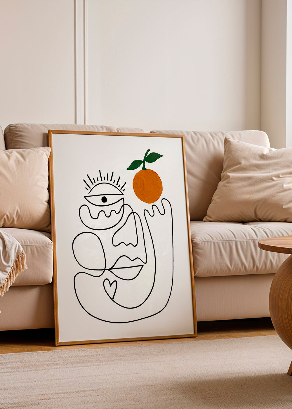 Ein Wandbild inspiriert durch die Kollektion von bilder mit gesichtern, gehört zur Kollektion Shatha Dafai, mit Farbnuance orange, und im Format vertikal. Abstrakte Wandbilder und Poster machen Räume einzigartig. Lasse deiner Kreativität freien Lauf und dekoriere deine Wände mit Kunst.