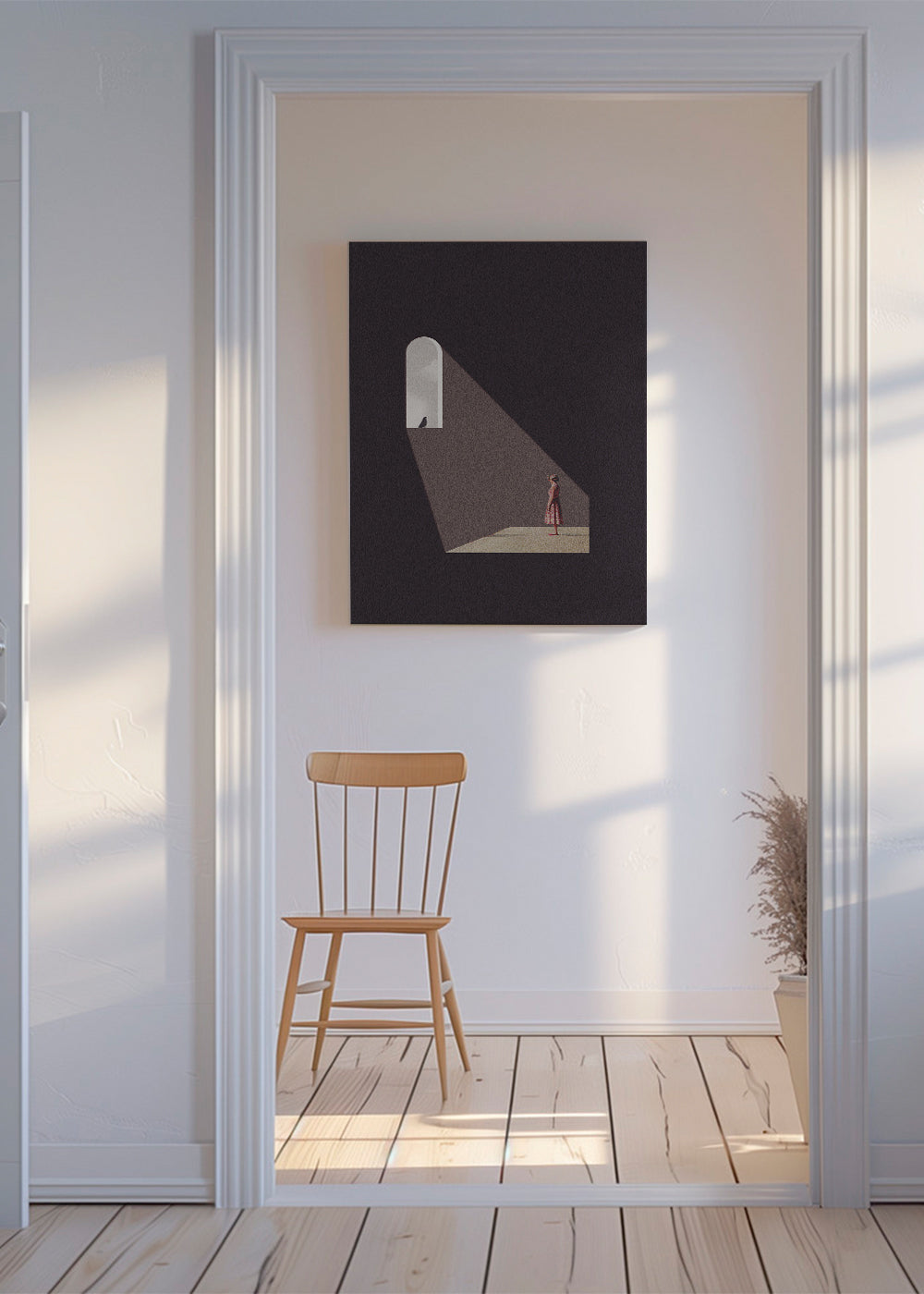 Das Passepartout ist eine weiße, matte Pappe, die das Poster umgibt, um es vor Methacrylat zu schützen, und die auch die Ausdruckskraft der Arbeit verstärkt und Details hervorhebt.