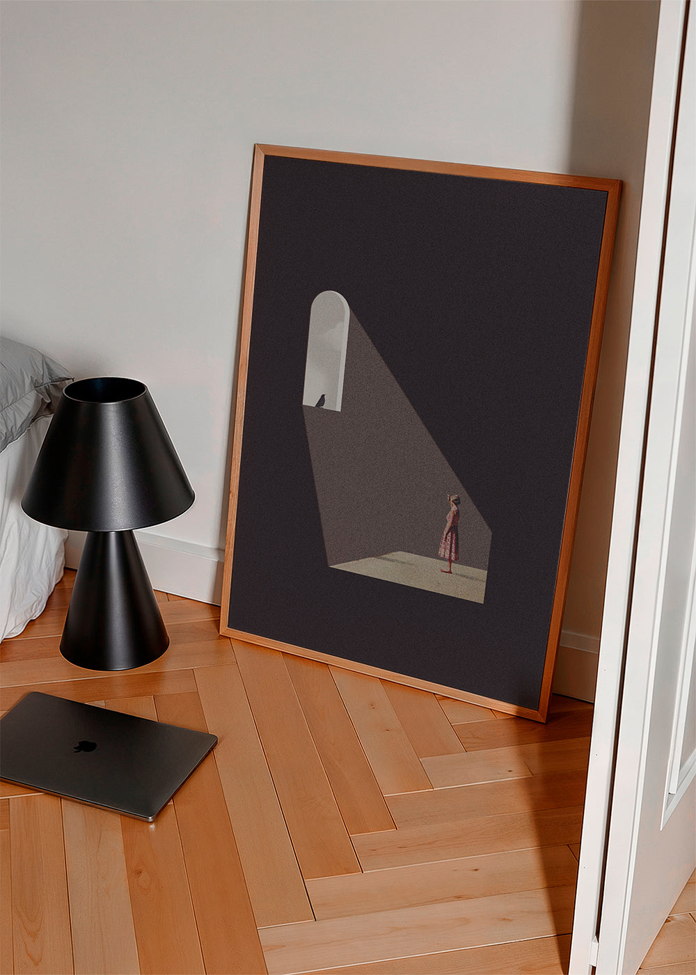 Alle unsere Rahmen werden in Spanien hergestellt. Die weißen, schwarzen und Eichenrahmen sind aus Ayous-Holz gefertigt, und die Eichenrahmen sind mit Eiche furniert, während die metallischen Rahmen aus Aluminium sind.
