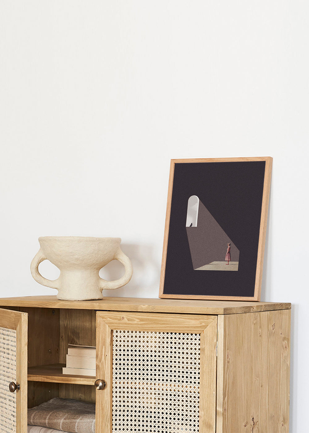 Wenn Sie die Passepartout-Option wählen, fügen wir die weiße matte Platte dem Rahmen hinzu und reduzieren das Design der Arbeit. Wählen Sie beispielsweise ein Druckformat 50x70 cm, mit eichenfarbenem Rahmen und Passepartout, reduzieren wir das Design des Druckes auf das bisherige Format (40x50cm). So passt es sich perfekt an das Innenfenster des Passepartouts an.