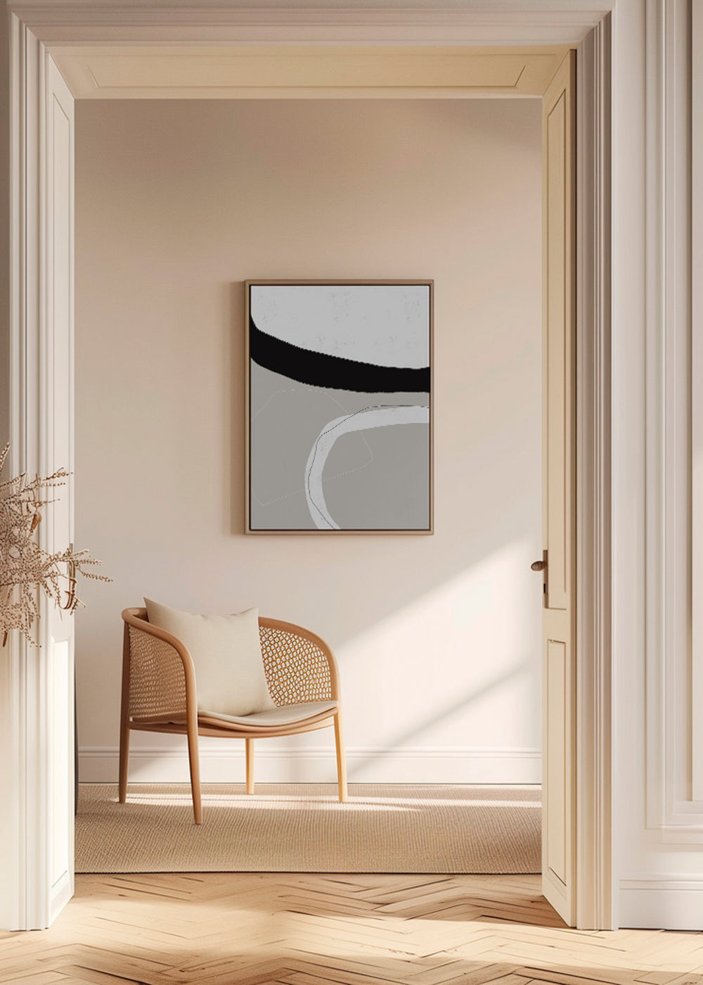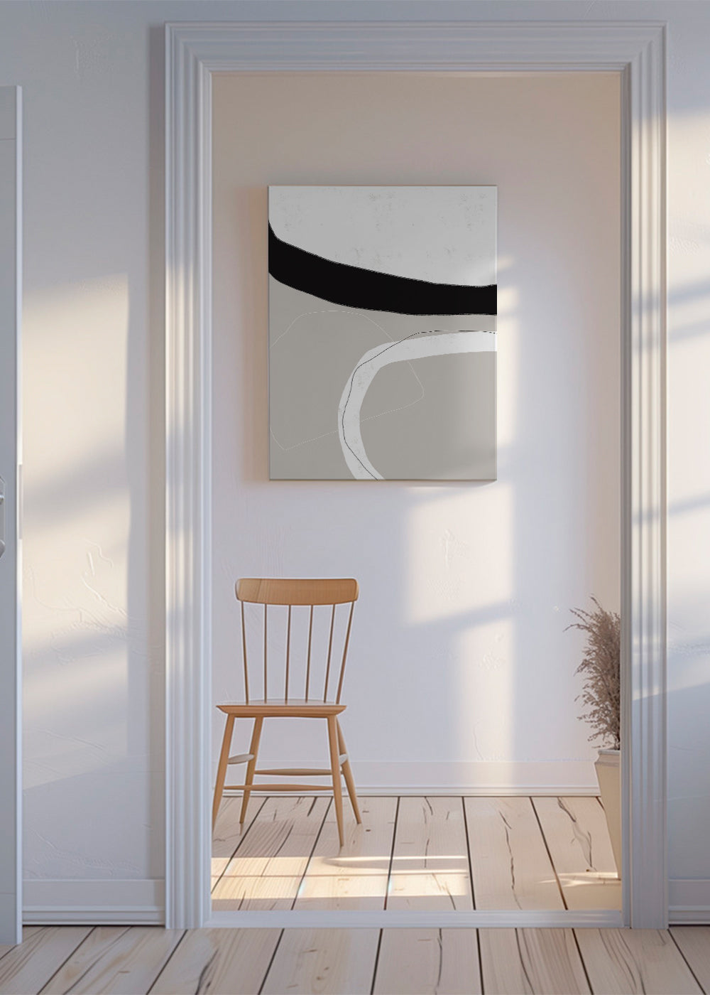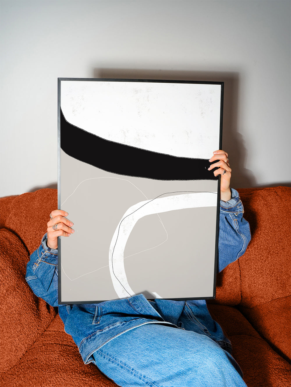 Ein Poster aus unserer Kunstauswahl poster abstrakt, Originalbild von U + Me Studio, mit Farben schwarz, und geeignet für Bildpositionen vertikal. Es ist ein abstraktes Kunstwerk, das perfekt zu jedem Wohnraum passt. Die Details machen den Unterschied.