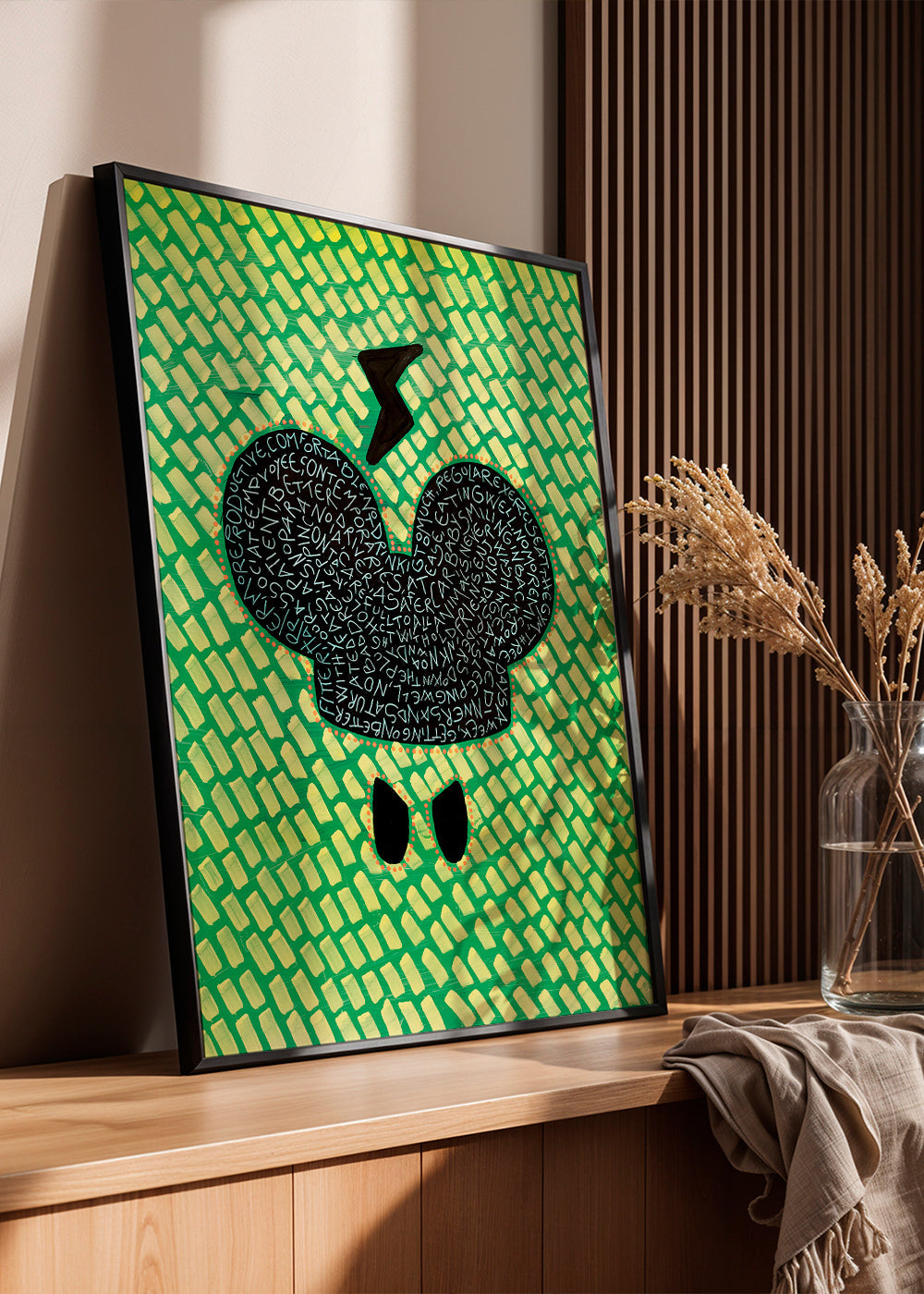 Schönes Kunstwerk aus der Kollektion street-art-poster und bilder, designed von 1x, in den Farbtönen grün, und für die Bildpositionen vertikal. Zeichnungen und Skizzen als Poster sind perfekt, um deine Wände auf kreative Weise zu dekorieren. Der letzte Schliff zur Einrichtung deiner Wohnung.
