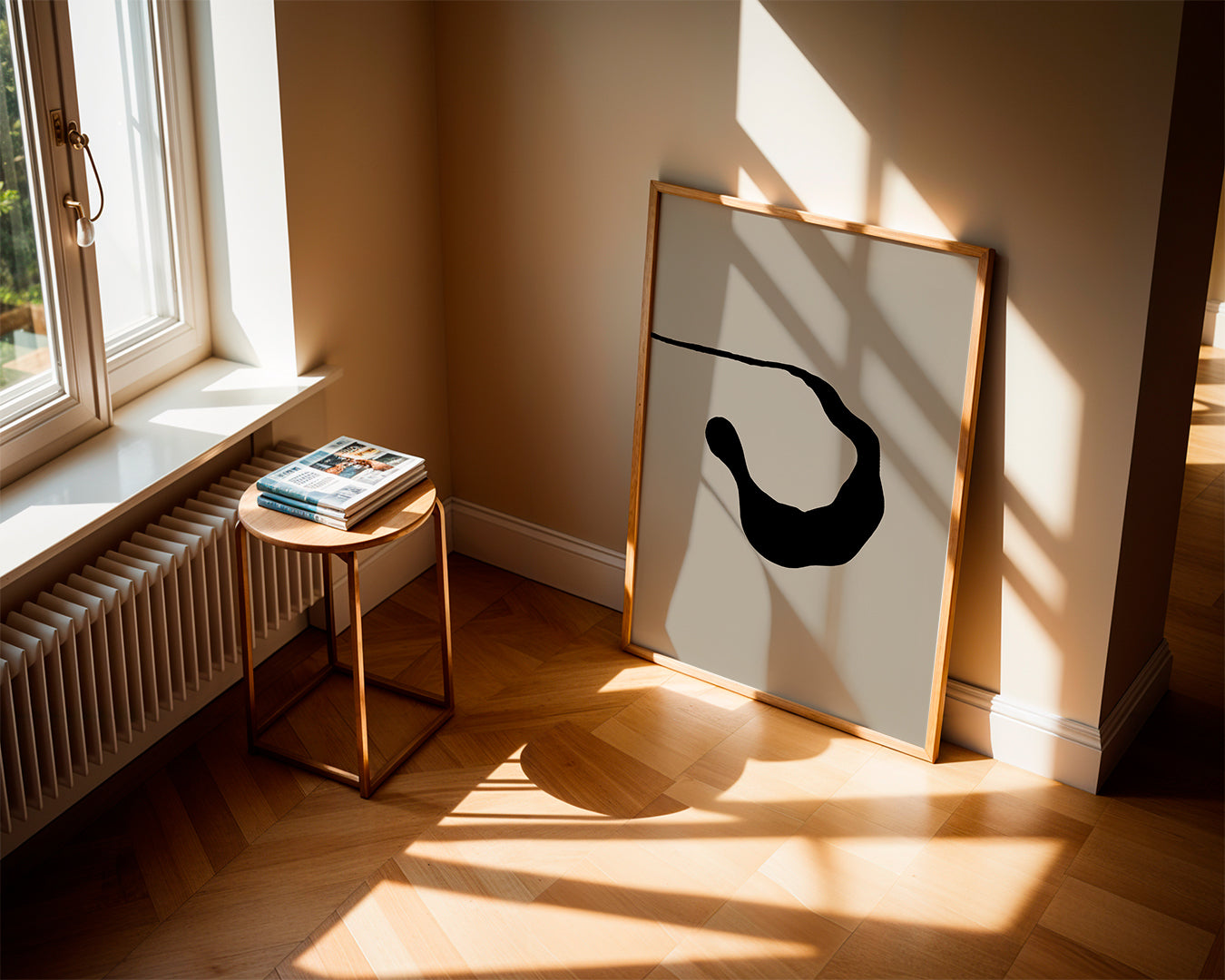 Dieser Kunstdruck aus unserer Bilderauswahl poster abstrakt, von Anna Mainz, mit Farbnuance Schwarz, und im Format Vertikal. Wenn du nach origineller und stilvoller Dekoration für die Einrichtung deiner Wohnung suchst, kannst du mit diesem abstrakten Design deiner Wand einen avantgardistischen Touch verleihen. Hier findest du kunstvolle Wanddekoration.