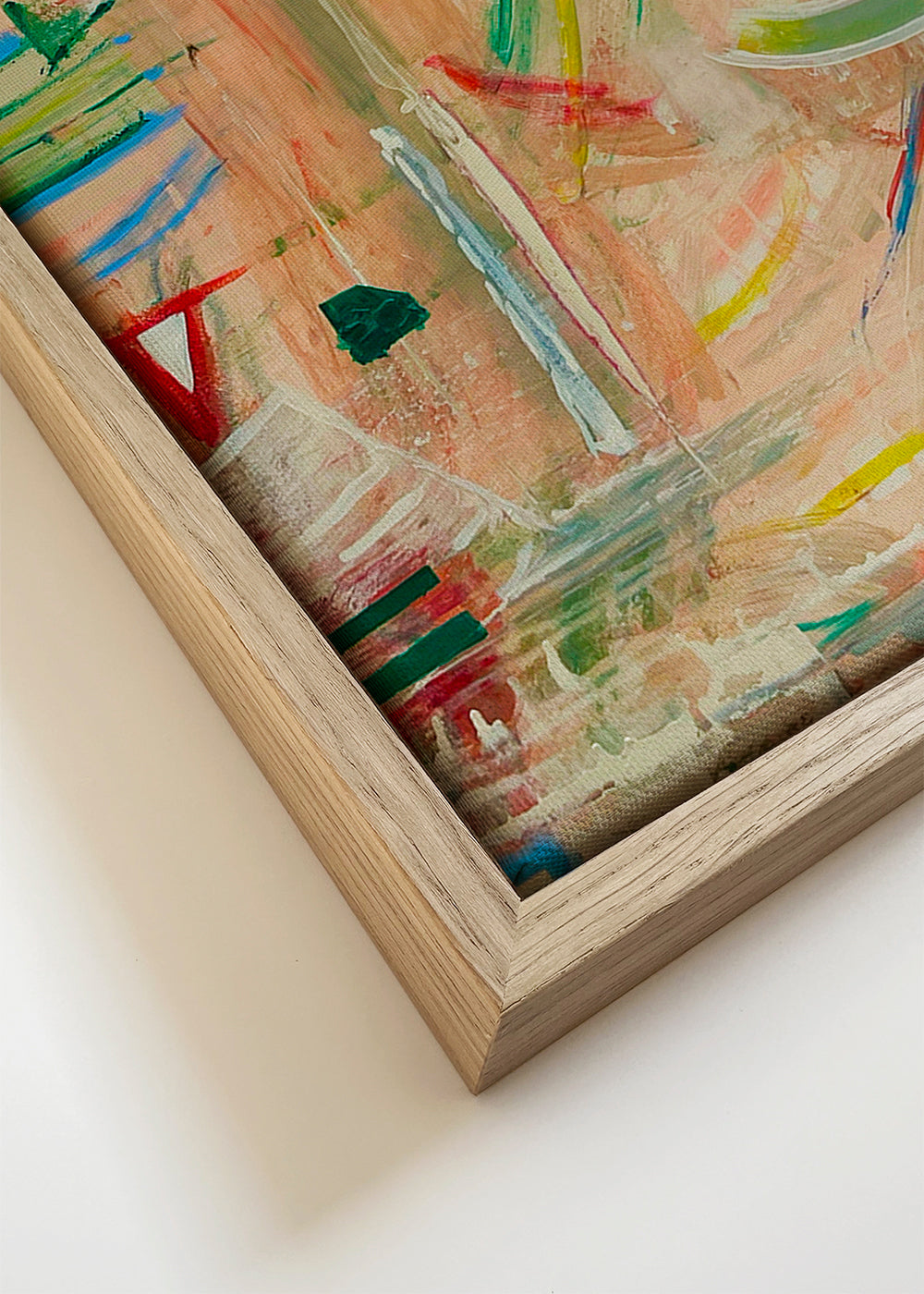 Alle unsere Rahmen werden in Spanien hergestellt. Die weißen, schwarzen und Eichenrahmen sind aus Ayous-Holz gefertigt, und die Eichenrahmen sind mit Eiche furniert, während die metallischen Rahmen aus Aluminium sind.