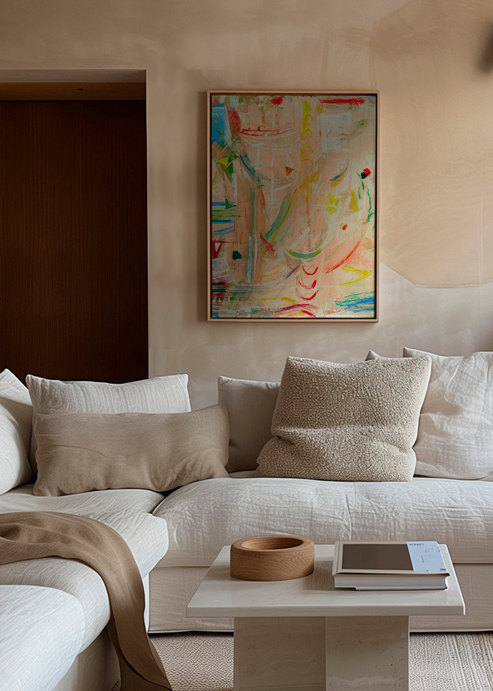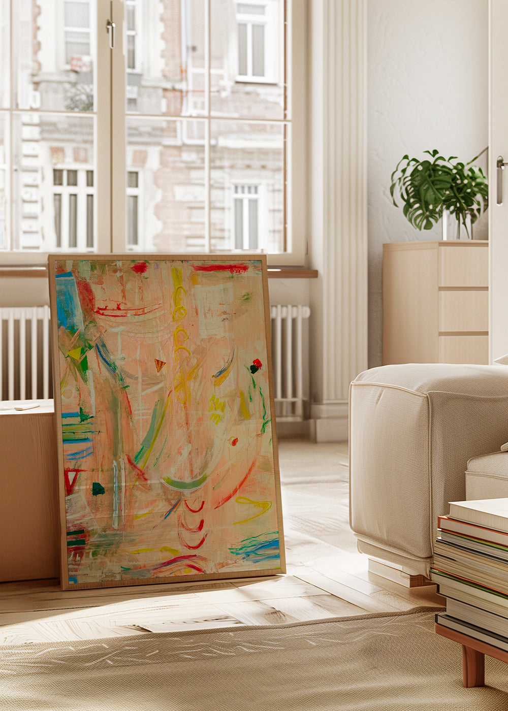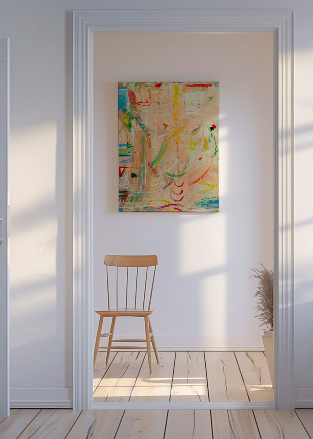 Ein Wandbild Im Stil unserer poster abstrakt, Originalbild von Elena Camacho Art, mit Nuancen mehrfarbig, und mit Ausrichtung vertikal. Das perfekte Design für die Wandbilder-Deko von modernen Wohnräumen. Kombiniere das Wandbild mit anderen abstrakten Bildern für eine Einrichtung im avantgardistischen Wohnstil. Verschönere deine Wände mit Wandbilder-Deko.
