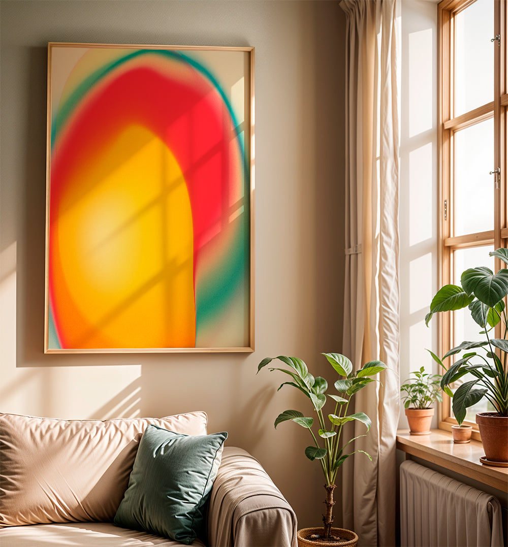 Ein Wandbild aus unserer handverlesene Auswahl nach poster abstrakt, des Kreativschöpfers 1x, mit Schattierungen gelb, und mit Ausrichtung vertikal. Abstrakte Wandbilder sind perfekt für eine einzigartige und kreative Inneneinrichtung. Verleihe deiner Inneneinrichtung einen künstlerischen Touch.