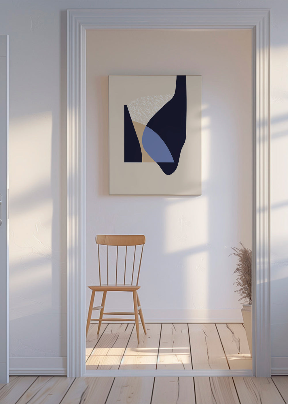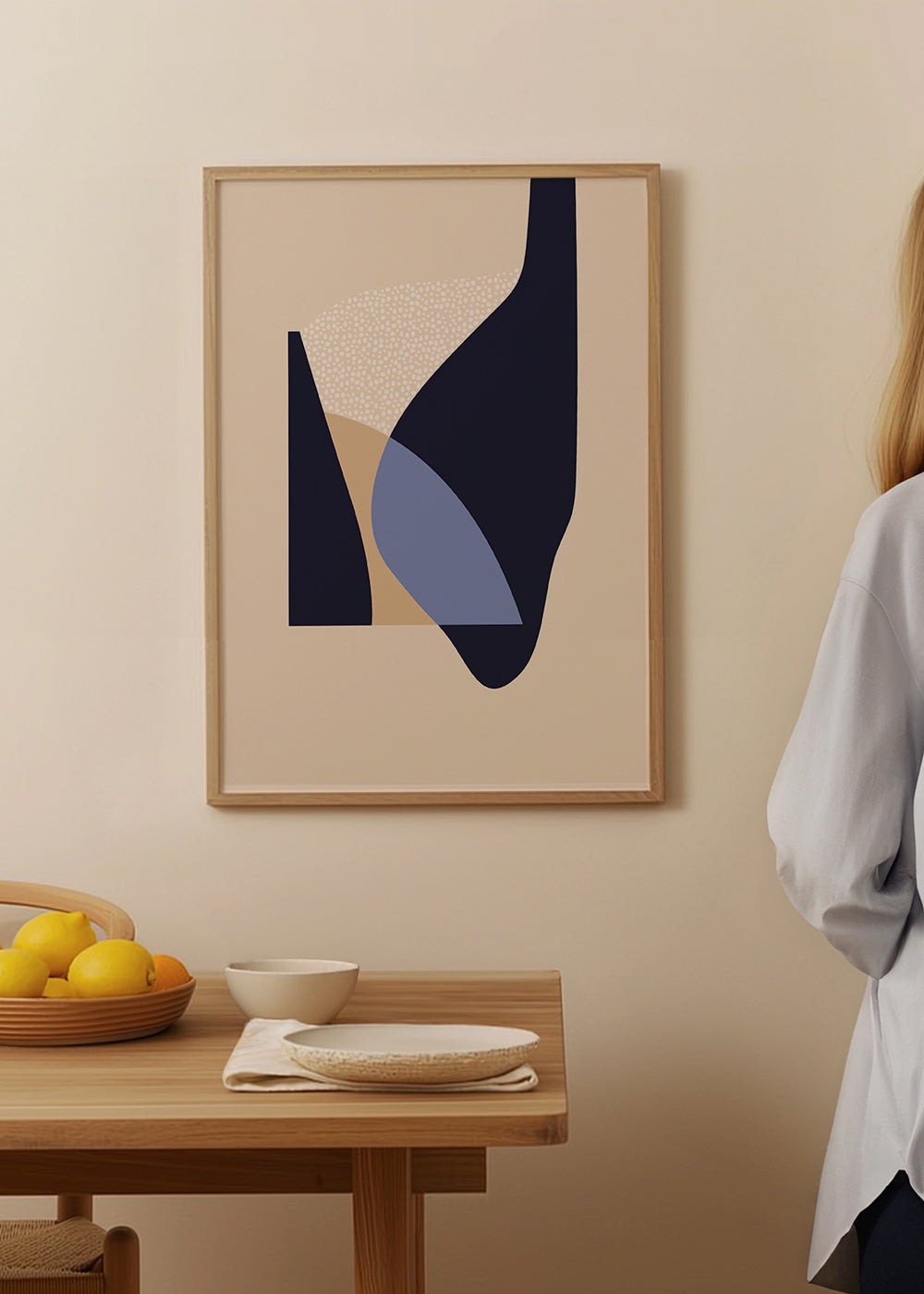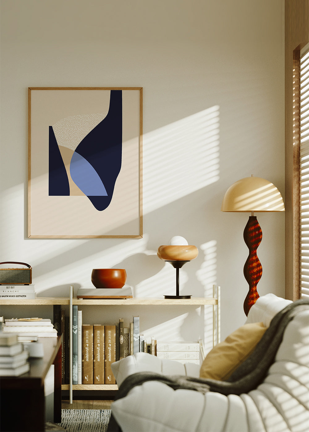 Ein Designs inspiriert durch die Kollektion von geometrische bilder, geschaffen von Anna Mainz, mit Schattierungen Blau, und ideal für die Bildposition Vertikal. Der Kunstdruck mit abstrakten Formen lässt sich hervorragend mit geometrischen Formen und abstrakter Kunst kombinieren. Kreative Einrichtungsideen und Design für deine Wohnung.