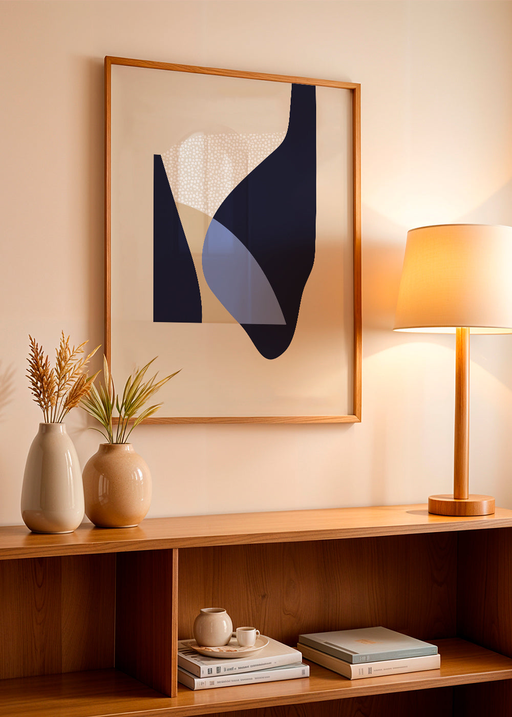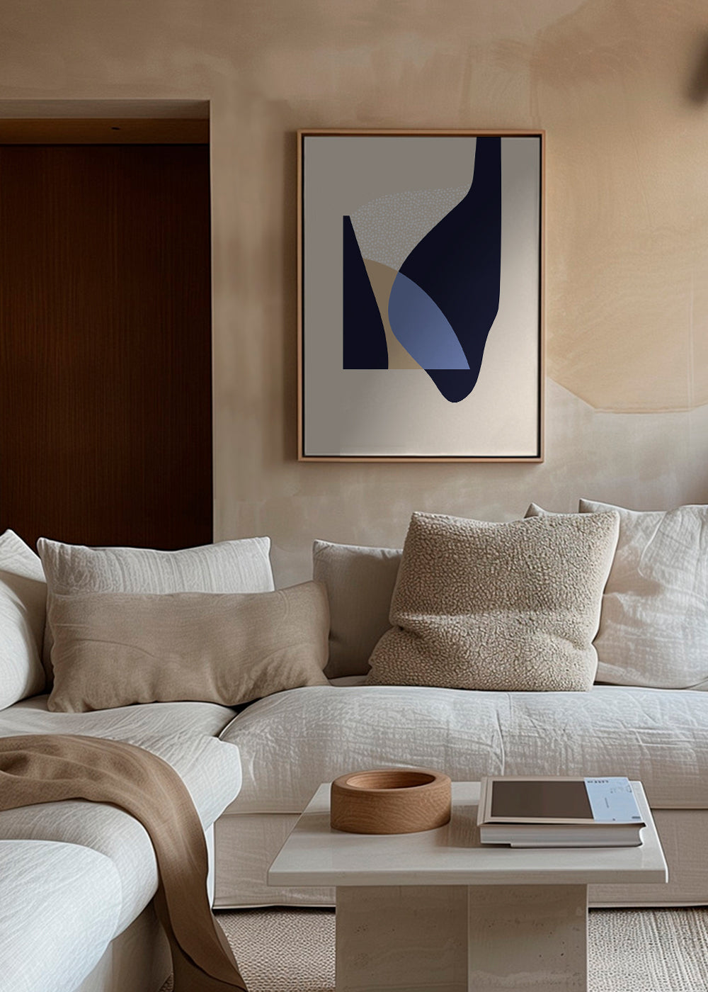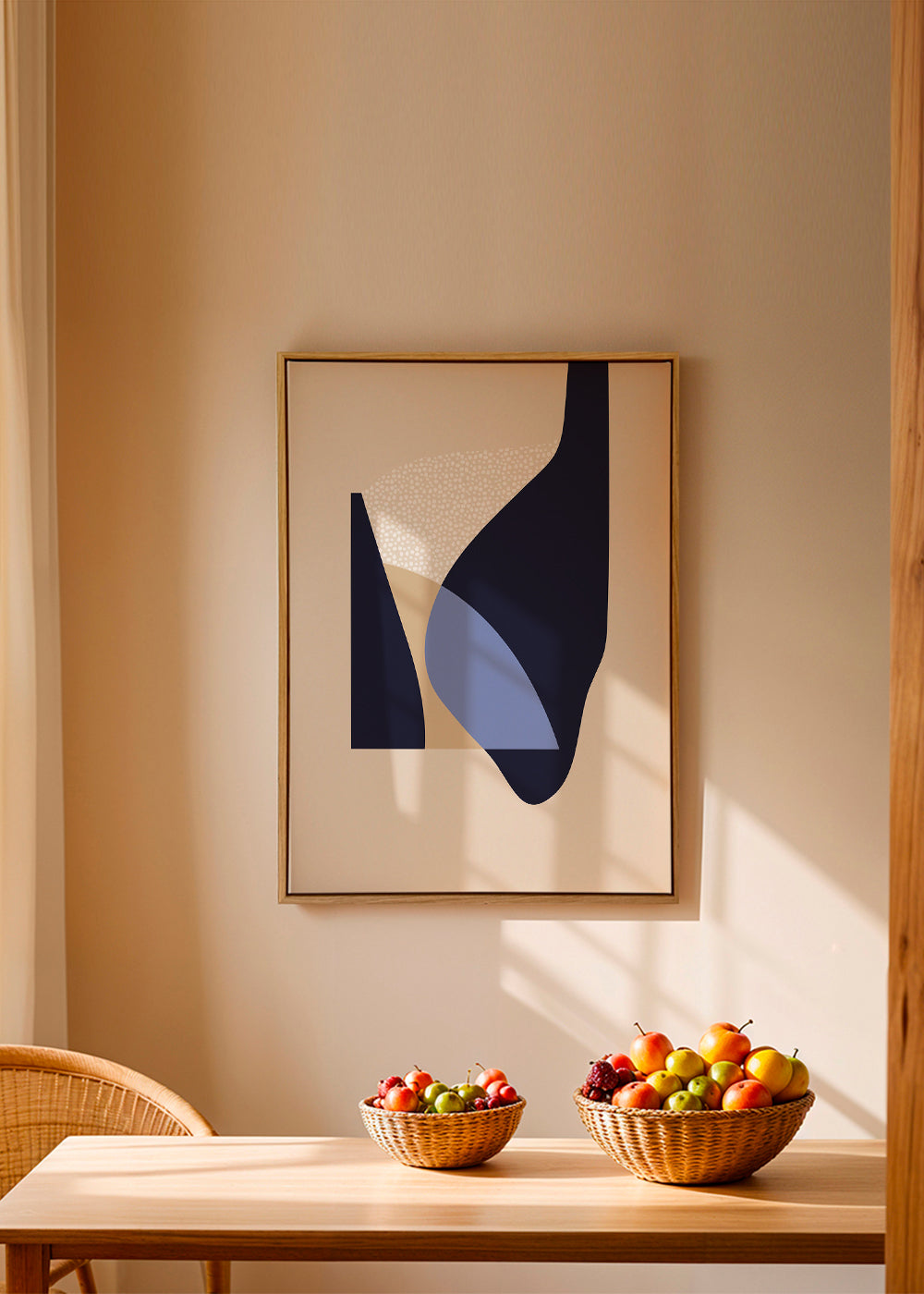Ein Designs inspiriert durch die Kollektion von geometrische bilder, geschaffen von Anna Mainz, mit Schattierungen Blau, und ideal für die Bildposition Vertikal. Der Kunstdruck mit abstrakten Formen lässt sich hervorragend mit geometrischen Formen und abstrakter Kunst kombinieren. Kreative Einrichtungsideen und Design für deine Wohnung.