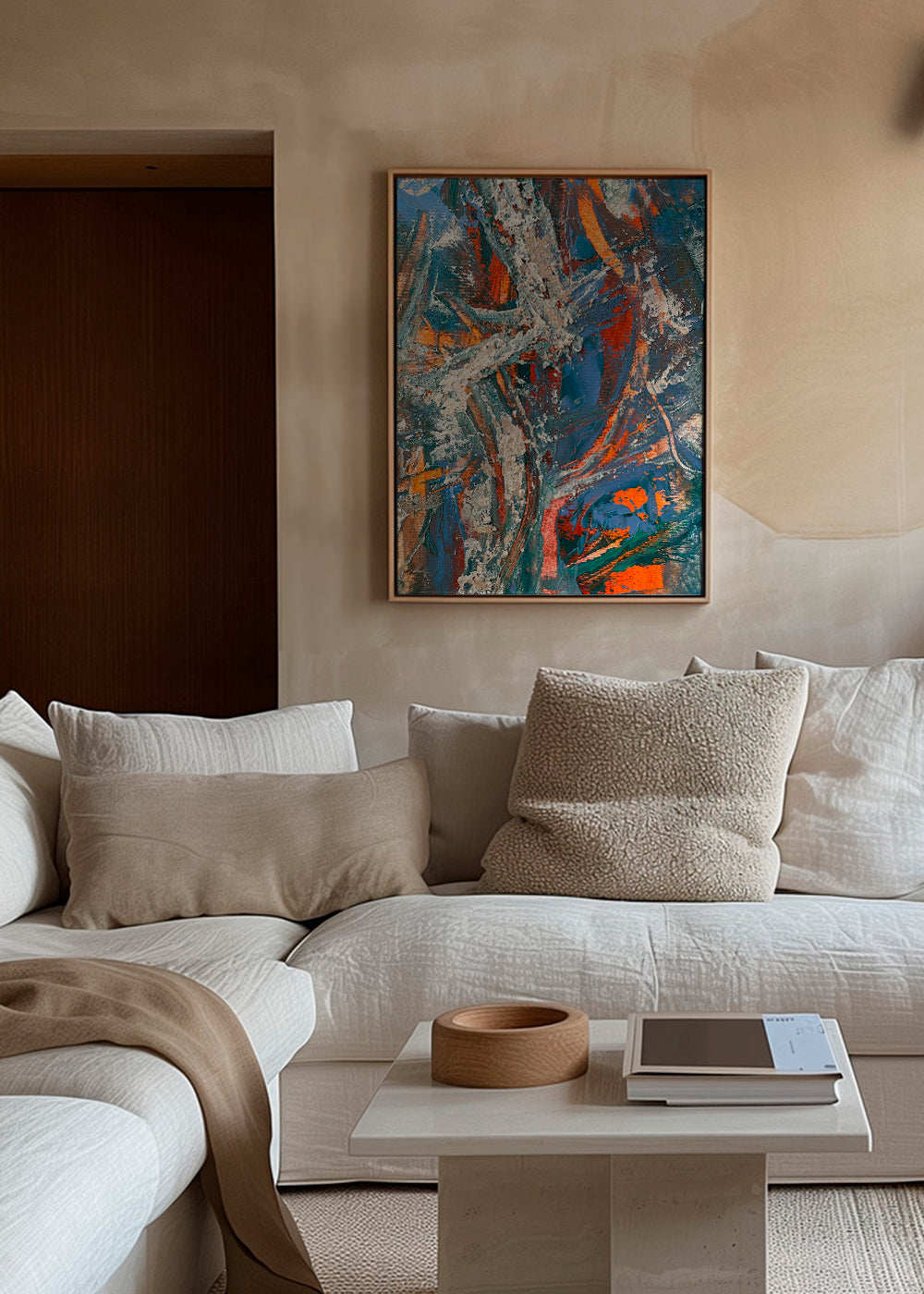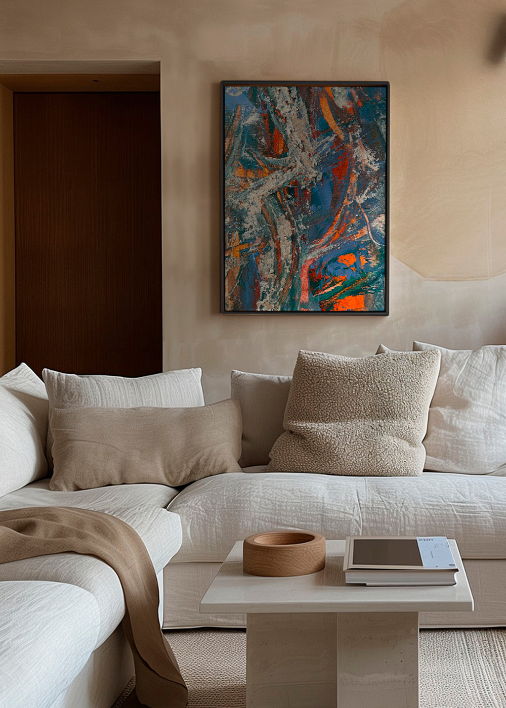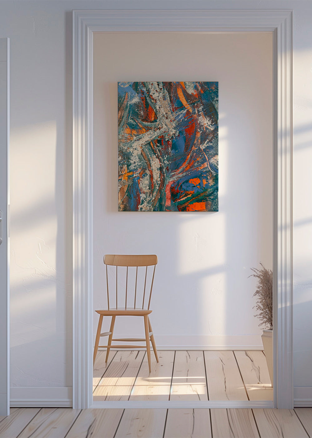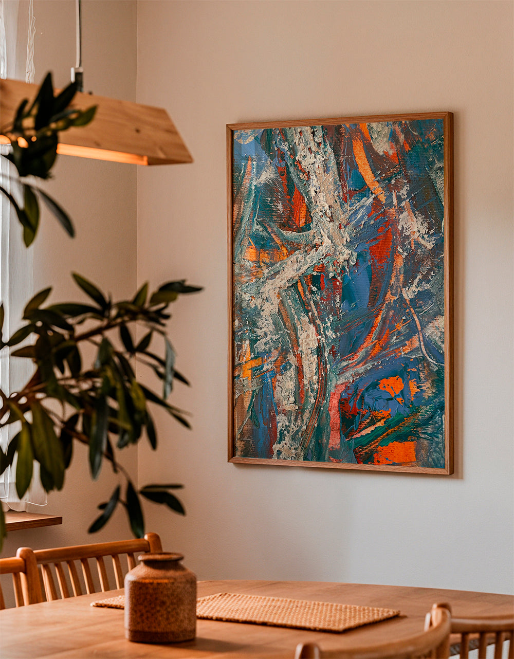 Ein Kunstdruck aus unserer Kunstauswahl poster abstrakt, Künstlern Elena Camacho Art, mit Nuancen mehrfarbig, und im Format vertikal. Es ist ein abstraktes Kunstwerk, das perfekt zu jedem Wohnraum passt. Hier findest du kunstvolle Wanddekoration.